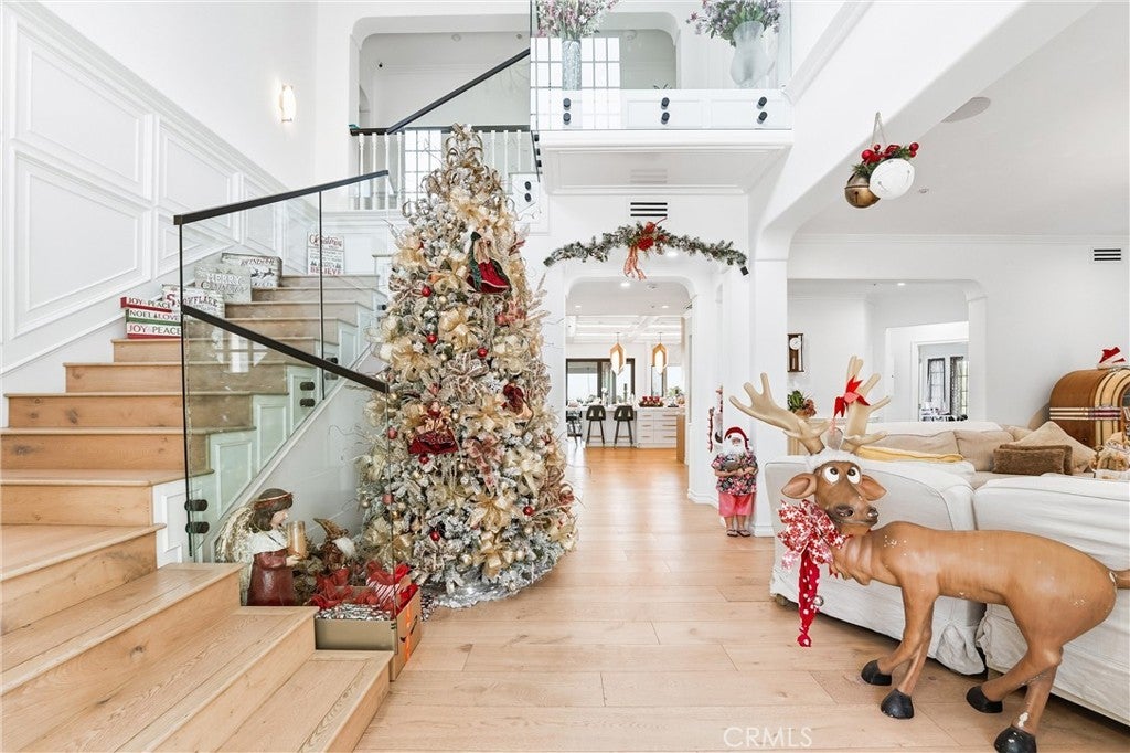 Beamed Ceilings, Built-in Features, Cathedral Ceiling(s), Eat-in Kitchen, High Ceilings, Multiple Staircases, Open Floorplan, Pantry, Recessed Lighting, Bedroom on Main Level, Jack and Jill Bath, Bar, Breakfast Bar, Ceramic Counters, Crown Molding, In-Law Floorplan, Intercom, Phone System, Solid Surface Counters, Stone Counters, Wired for Sound