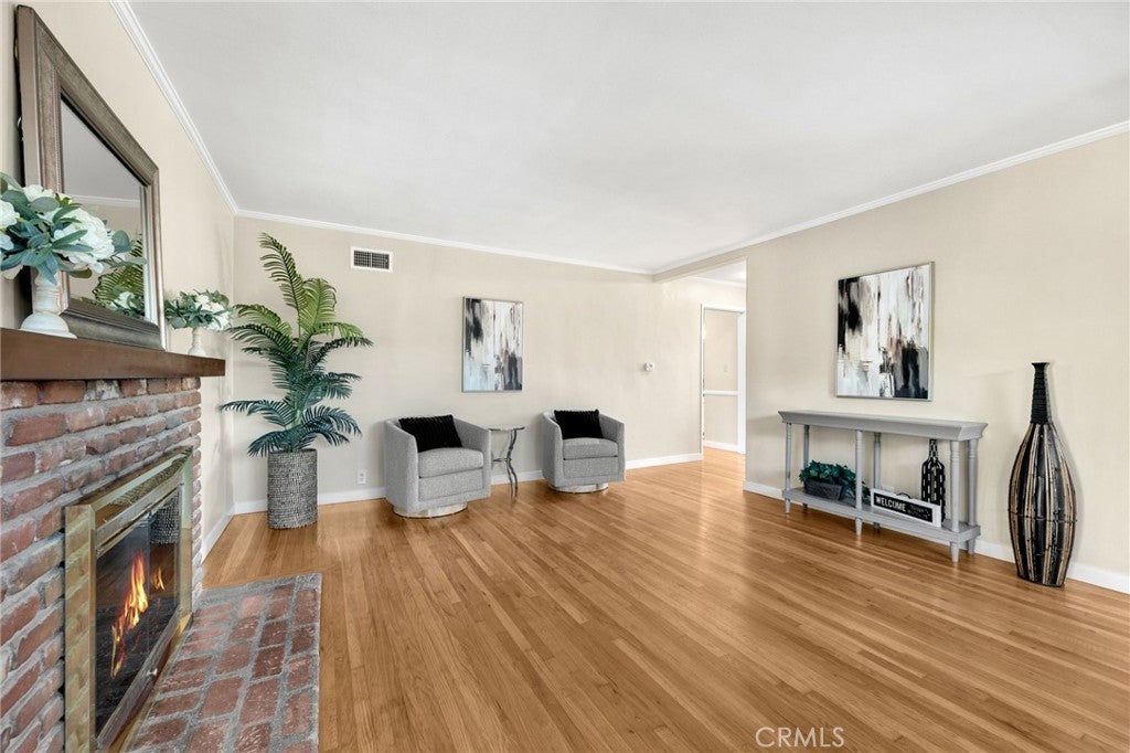 THIS HOME IS A MUST SEE! BEAUTIFUL, SINGLE-STORY home located in a quiet neighborhood in Brea! This house features a bright and open floorplan with 3 bedrooms, 2 bathrooms with 1,271 square feet of spacious living space. You are welcomed at the entry into the kitchen that includes plenty of cabinets for storage, gas cooktop, breakfast nook and it is open to the family room. The LARGE family room features beautiful wood flooring, a cozy brick fireplace and has views of the backyard. This home includes generously sized bedrooms with plenty of closet space, full-sized bath and a Jack and Jill bathroom with beautiful shower. The private, HUGE backyard includes mature landscaping, and covered patio area. Additional features of the home include 2 car garage, beautiful wood flooring throughout, and NO HOA. Located in the Award-winning Brea Olinda Unified School District, and is just a few minutes away from the Brea Mall, Downtown Brea, Brea Creek Golf Course, Restaurants and Entertainment. This home is one you won’t want to miss!