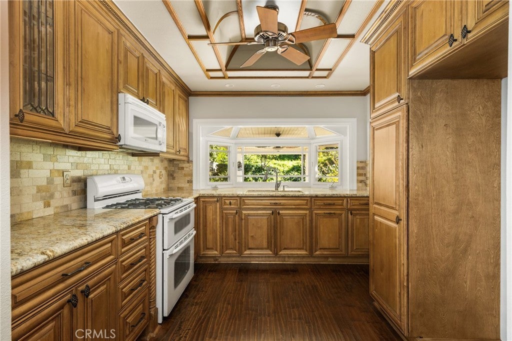 ENJOY LIVING AT ITS BEST with this SINGLE STORY HOME in a fantastic neighborhood NEAR LAKE MISSION VIEJO! DOUBLE DOORS lead to the formal entry and a LARGE LIVING ROOM with VAULTED CEILING and WOOD BURNING FIREPLACE. There’s a FORMAL DINING AREA and a SEPARATE FAMILY ROOM with direct garage access. The UPGRADED KITCHEN has GRANITE COUNTERS, soft close cabinets and drawers and a BEAUTIFUL CUSTOM GARDEN WINDOW overlooking the rear yard. Attractive ENGINEERED WOOD FLOORING and CUSTOM SHUTTERS are throughout most of the home. All bedrooms have MIRRORED CLOSET DOORS and ceiling fans. Enjoy CENTRAL AIR CONDITIONING and a newer (3 years old) furnace. A highlight is the HUGE, LUSH REAR YARD that includes A SPACIOUS COVERED PATIO with pavers. It’s perfect for outdoor entertaining! Enjoy several producing fruit trees. It’s a close walk to CASTILLE PARK and CASTILLE ELEMENTARY SCHOOL. Also close by are SHOPPING, FINE DINING, the OSO CREEK TRAIL and CASTA DEL SOL GOLF COURSE!