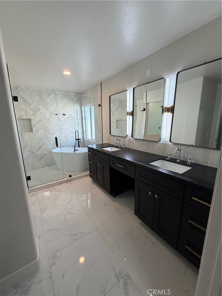 Tucked away on a peaceful cul-de-sac in Eastlake Village, this property delivers a thoughtfully reimagined living experience where design, comfort, and efficiency come together seamlessly. This beautifully recently remodeled residence offers an airy, light-filled layout with high ceilings, expansive hallways, and a natural flow that feels both welcoming and sophisticated. The living room sets the tone with a striking fireplace and generous windows dressed in new shutters, creating a bright yet cozy gathering space. At the heart of the home, the kitchen has been designed for both form and function—featuring quartz countertops, sleek white cabinetry, premium stainless steel appliances, and an oversized island ideal for everyday living or hosting with ease. Just beyond, the dining area is enhanced by custom lighting, making it a natural focal point for entertaining. Practicality meets style on the main level with a laundry room, powder bath, and ample storage. Upstairs, the primary suite offers a private escape, complete with a spa-inspired bathroom showcasing a soaking tub, dual vanities, and a contemporary walk-in wet room finished with upscale materials. Two additional spacious bedrooms and an updated hall bathroom round out the upper level. Designed with modern living in mind, the home includes a solar energy system with whole-home battery backup, a water softener with reverse-osmosis drinking water, and an EV charging outlet in the three-car garage—delivering comfort, efficiency, and future-ready convenience. The backyard provides a calm retreat, highlighted by a pergola-covered seating area perfect for unwinding or entertaining outdoors. Located within a top-rated school district and just steps from the Eastlake clubhouse and lake, this home offers easy access to walking trails, shopping, dining, and community amenities. An exceptional opportunity to enjoy elevated living in one of Yorba Linda’s most sought-after neighborhoods. Don't miss out. View the property and secure it—this listing will go fast. Call Broker for Combo Code