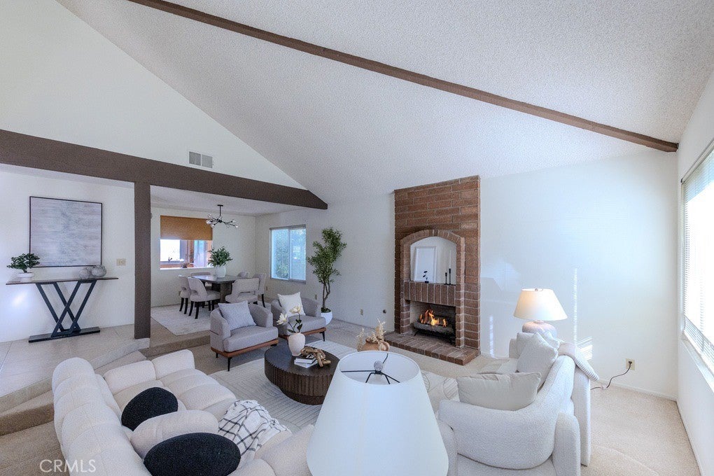 Beautifully maintained 3-bedroom, 2-bath single-level detached home offering approximately 1,913 sq. ft. of living space on a 9,100 sq. ft. lot (approx.) with an attached 2-car garage. The open and spacious floor plan is ideal for comfortable living and entertaining. The home features a large living room with vaulted ceilings and a brick fireplace, opening to the dining area. Bright kitchen includes a double oven and ample cabinet space. Spacious family room offers vaulted ceilings, a wet bar, and glass double doors leading to the backyard with mountain and snow-capped mountain views. The primary suite features a double-door entry, vaulted ceiling, and a large walk-in closet with mirrored doors. Primary bathroom includes dual sinks. Additional highlights include double-pane windows and doors, newer central A/C and heating, and abundant natural light throughout. Conveniently located near schools, shopping, parks, golf courses, and freeway access.