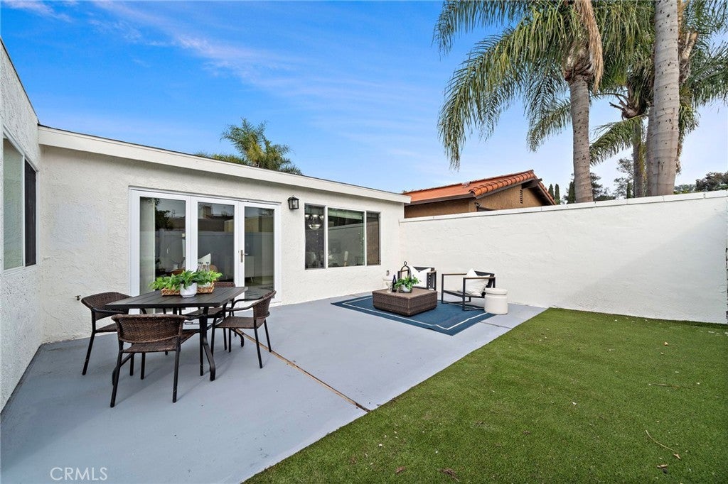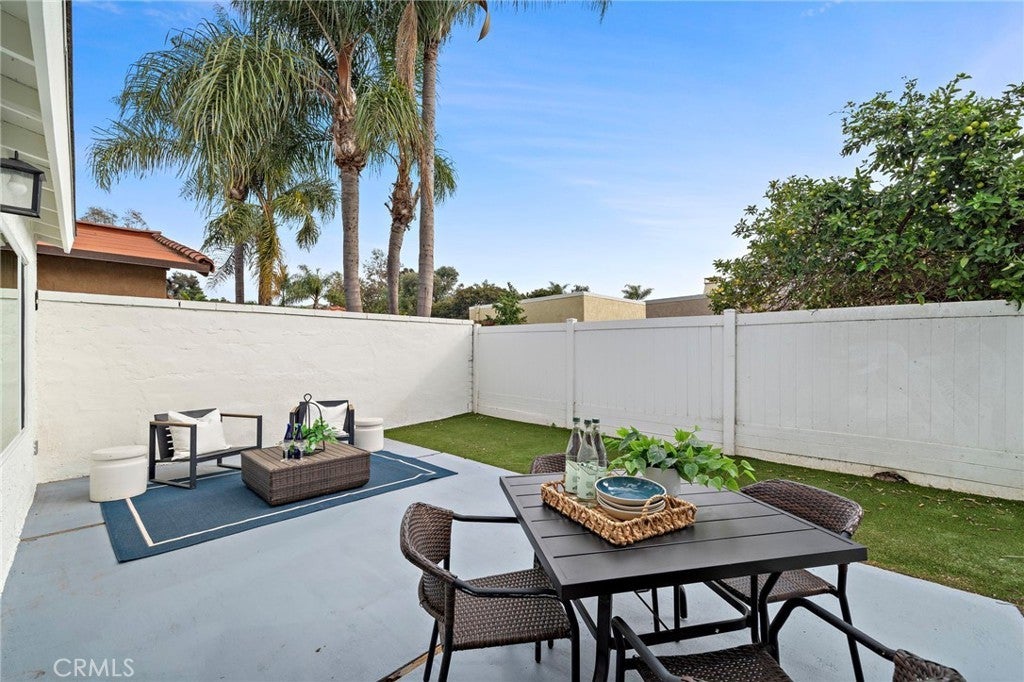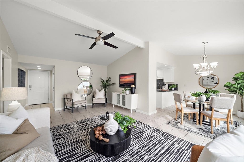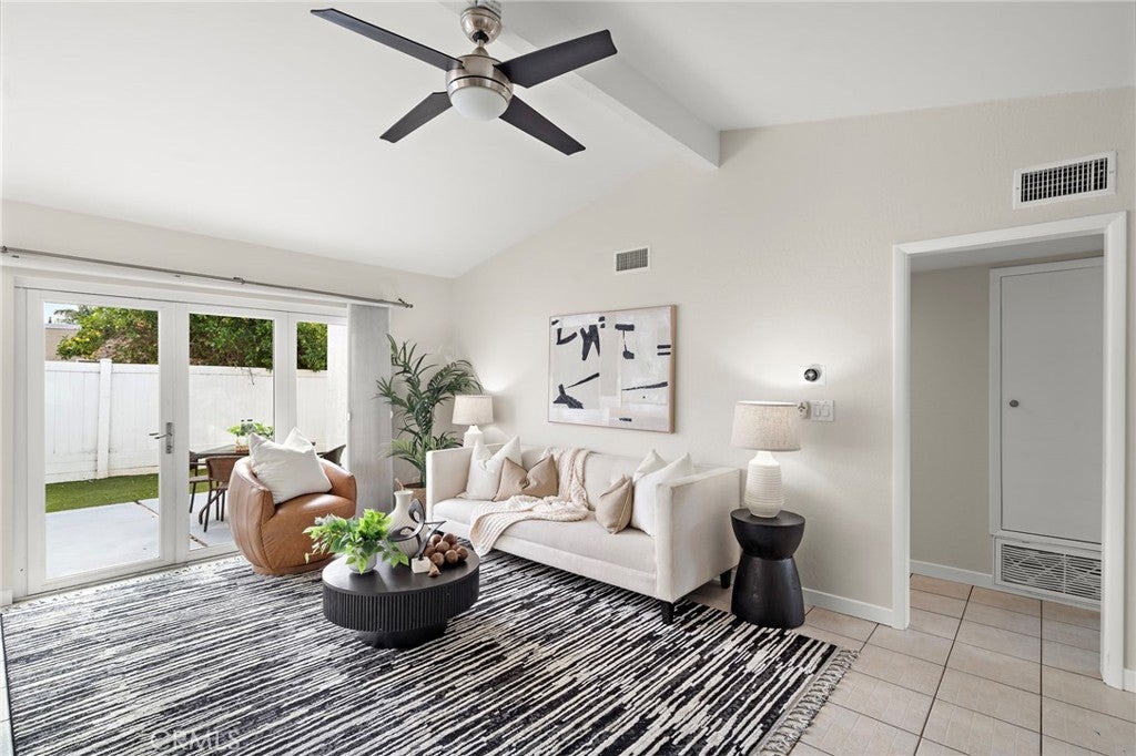 Welcome to 26652 Paseo Rosarito, a single-level updated corner unit home located in the desirable Capistrano Garden Homes community of San Juan Capistrano. This move-in-ready single-family residence offers an open floor plan, vaulted ceilings, and a private outdoor space—perfect for relaxed Southern California living. The light-filled living room features dramatic vaulted ceilings with an exposed wood beam and a multi-slide door slider with 3 panels that open to a spacious, private, low maintenance patio. The living area flows seamlessly into the dining space and kitchen, which is equipped with white cabinetry, stainless steel appliances, recessed lighting, and ample storage. The primary bedroom includes laminate wood flooring and direct access to the bathroom. A generously sized secondary bedroom with matching laminate flooring is conveniently located near the full hall bathroom. Additional highlights include a two-car epoxy lined attached garage with laundry hookups, newer roof, updated landscaping, dual pane windows, newer HVAC system, and with available RV parking and low HOA. Enjoy nearby walking and biking trails, community common areas, local shopping, dining, and entertainment in downtown San Juan Capistrano. Walking distance to JSerra Catholic High School, close to the historic Mission San Juan Capistrano, and just a short drive to the beach. A rare opportunity to own a single-level home with RV available parking in a prime coastal location.
