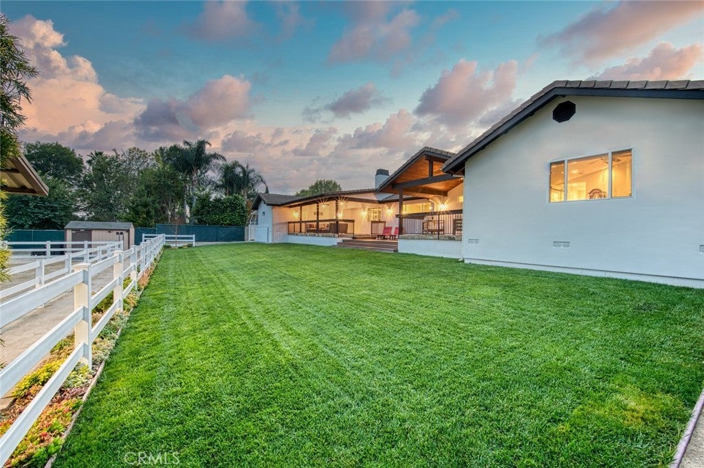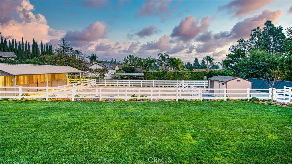 The epitome of elegance and equestrian charm! Few residences embody Yorba Linda’s cherished motto as gracefully as this single-level, equestrian-friendly custom estate. Set upon nearly half an acre of beautifully landscaped grounds, the property offers an exceptional lifestyle along with a three-stall horse barn, exercise arena, and tack shed - perfectly blending refined living with equestrian pursuits. Rebuilt in 2012, the home was thoughtfully reimagined into a spacious sanctuary of comfort and sophistication. The recently remodeled chef’s kitchen showcases extensive custom cabinetry, quartz countertops, Thermador stainless steel appliances, and a generous center island, seamlessly flowing into the open formal dining area. From both the kitchen and the primary suite, you are invited to expansive patio decks, ideal for entertaining or quiet moments of retreat. Vaulted ceilings with recessed lighting enhance the airy ambiance, while the family room is anchored by a striking gas-and-wood-burning fireplace. The primary suite is a true haven, featuring a luxurious en-suite bath and a walk-in closet. Each bathroom has been tastefully remodeled, and fresh interior and exterior paint lend a crisp, modern finish. A three-car tandem garage, complete with a dedicated laundry room and abundant storage, plus you will find accommodation for a horse trailer or recreational vehicles. Yorba Linda’s Philip S. Paxton Equestrian Center is located less than half mile away. This is not simply a home - it is a rare opportunity to own one of Yorba Linda’s most special properties, where elegance, comfort, and equestrian charm converge in perfect harmony.