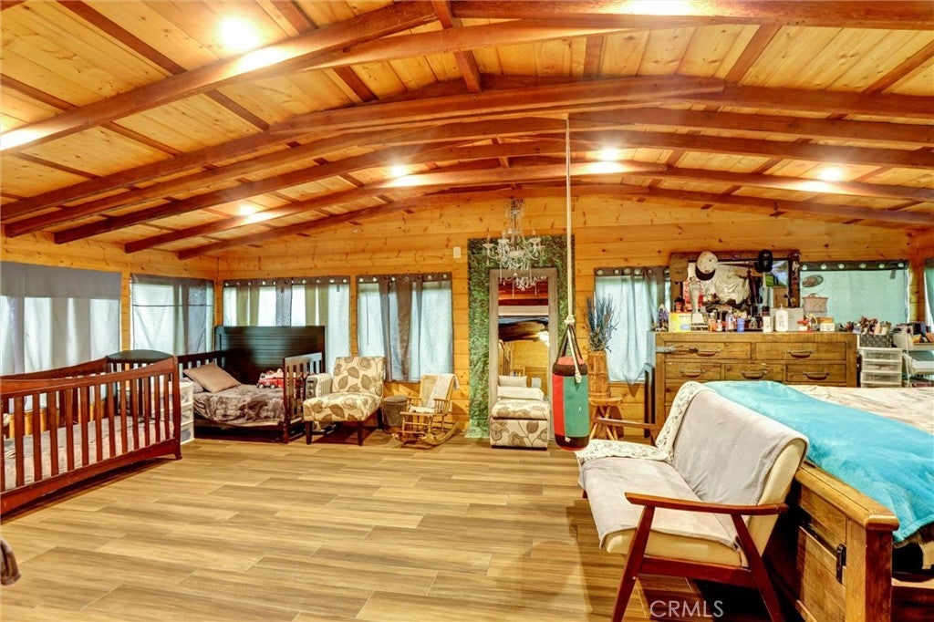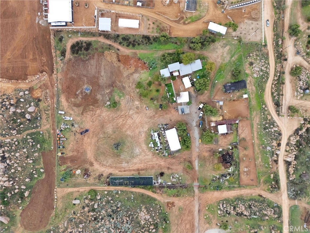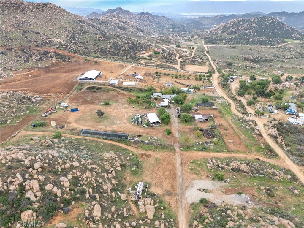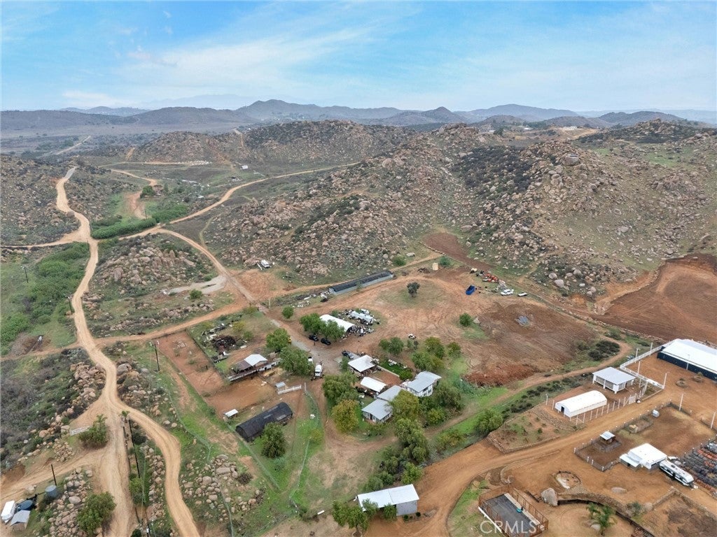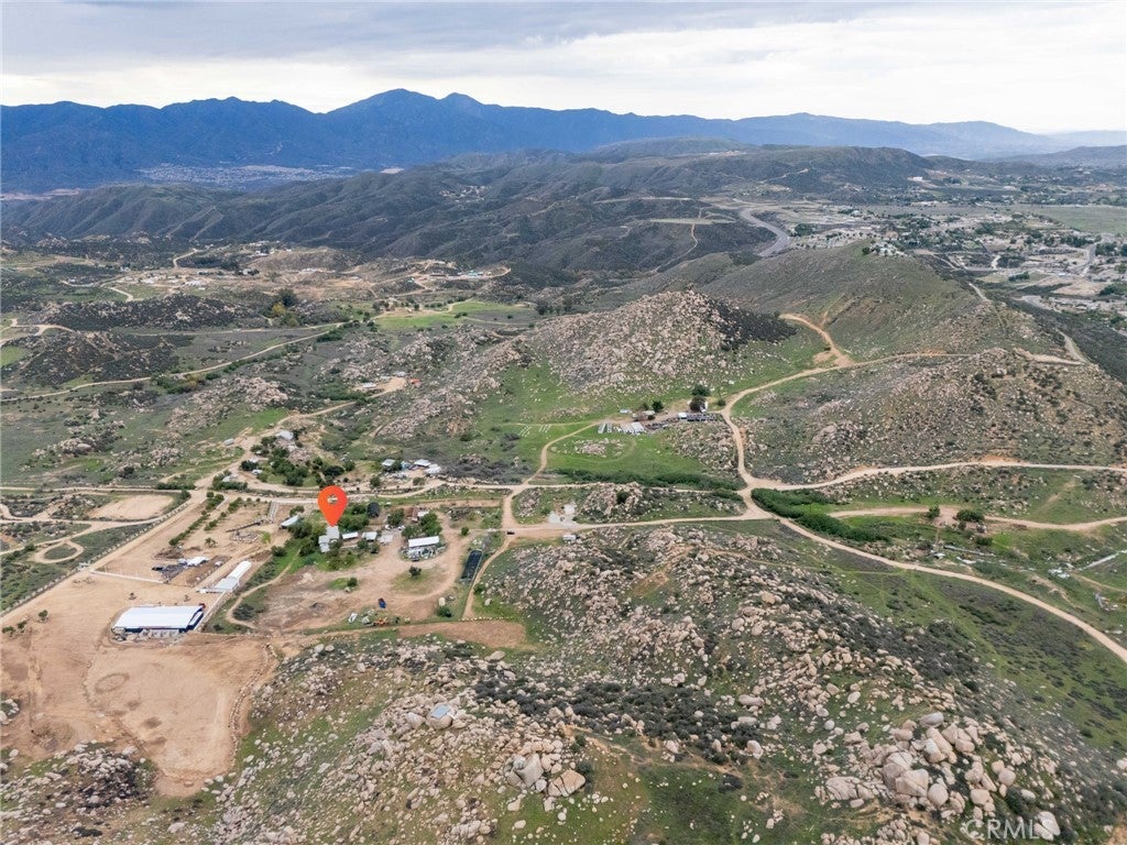 Rustic and private 4-bedroom, 3-bath, two-story home set on 20.42 acres in the sought-after Gavilan Hills of Perris. This unique property offers a rare combination of flat, usable land, a scenic canyon, and a mountaintop with panoramic views. Originally built as a 1950s cabin, the home has been thoughtfully expanded to include additional bedrooms and bathrooms, a garage with studio apartment potential, electricity, and two functioning water wells on the property. The interior features open-beam ceilings, warm wood paneling, and new ceramic tile flooring throughout the main living areas, creating a comfortable and inviting atmosphere. The land is well suited for a variety of uses, including equestrian living, with existing horse stables and chicken coops. Enjoy endless outdoor opportunities with space for hiking, rock climbing, and exploring your own private acreage. Approximately five fenced, usable acres offer potential for subdivision into four 5-acre parcels (buyer to verify). Conveniently located near Lake Elsinore and Lake Matthews, this property provides exceptional privacy while remaining accessible to nearby recreation, shopping, 15 and 91 freeways. A rare opportunity for those seeking space, views, and versatility in a peaceful mountain setting.