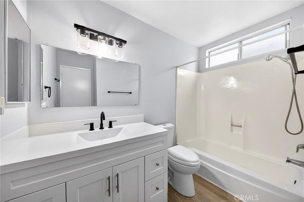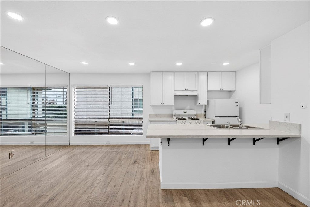 Welcome to Los Olivos, a beautifully maintained resort-style gated community nestled in the heart of La Mirada. This upgraded 1-bedroom, 1-bathroom desirable ground-floor unit offers 634 square feet of comfortable living space and is move-in ready. The home boasts a remodeled kitchen featuring quartz countertops, a stainless-steel sink, and modern cabinetry. The water-resistant laminate flooring, recessed lighting and an amazing modern bathroom complete the look. The bedroom has an exceptionally large walk-in closet to accommodate all your storage needs. Step outside to your private balcony, perfect for relaxing or enjoying a morning coffee. Additional highlights include a covered carport space and generous HOA amenities such as pools, tennis courts, a spa, a gym, a clubhouse, a barbecue area, and scenic greenbelts. Water and trash are included in the HOA dues for added convenience. Located in a desirable community with lush surroundings and easy access to shopping, dining, and transportation, Los Olivos is a perfect opportunity for first-time buyers, downsizers, or investors. Don’t miss out on the chance to own in the sought-after Los Olivos complex!