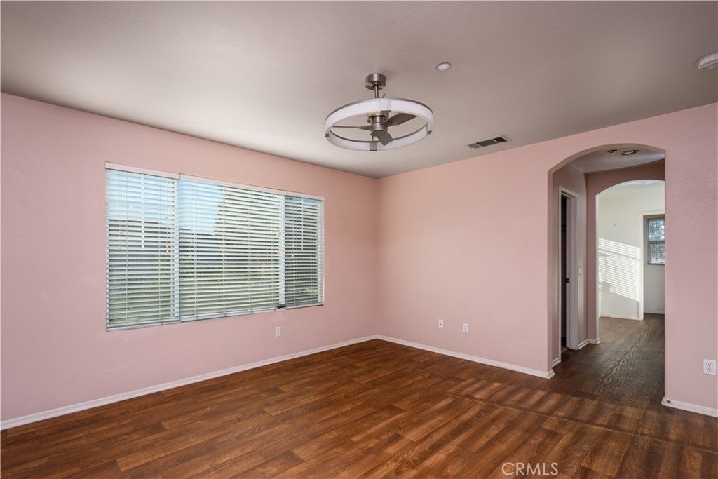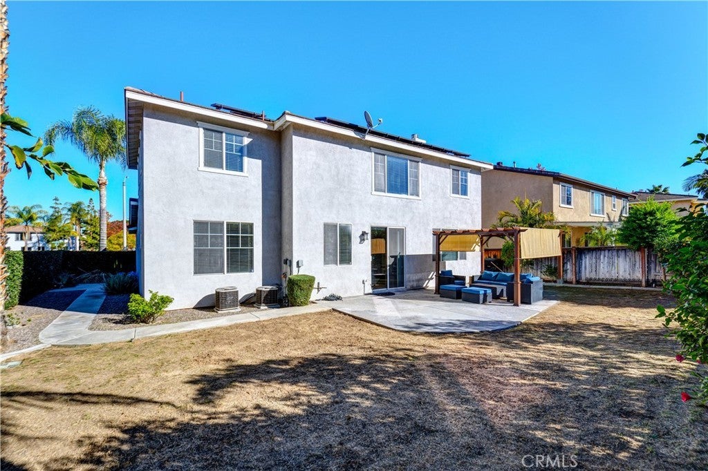 SOLAR Comes with Rental Property. SAVE on Electricity. Welcome to this beautiful and spacious 5 bedroom, 3 bath home located in the highly sought-after Montecito Estates Riverwalk GATED community. Two story Perfect blend of comfort, style and convenience. This corner lot home has great curb appeal with refreshed exterior paint, mature trees and plants. You'll love the covered front porch area as you enter the home. Inside, you'll be greeted by soaring ceilings and an abundance of natural light flooding through the top windows, creating a bright, open atmosphere. The entire first floor has brand new luxury vinyl plank flooring and upgraded, modern baseboards. A generously sized bedroom on the main floor is perfect for a home office. Located right next to the bedroom is a recently remodeled bathroom featuring new walk-in shower, vanity, and lighting. Head past the separated formal dining and living rooms, with ample space for entertaining and family gatherings, to the kitchen. The kitchen boasts freshly painted white cabinets with new black hardware, granite countertops, and kitchen island that opens to a dining area and cozy family room, making it perfect for hosting or everyday living. The family room is warm and welcoming with a ceiling fan and classic fireplace, ideal for chilly evenings. Located downstairs, the laundry room offers additional storage and access to the two car garage. Upstairs, the freshly painted banister leads you to a spacious primary suite, three additional bedrooms and full bath. The primary suite offers a peaceful retreat with laminate flooring, ceiling fan, and ensuite bathroom. Enjoy the luxury of a separate soaking tub, walk-in shower, newly painted double sink vanity with black hardware and two closets - one being a walk-in. Three other spacious bedrooms are down the hall, as well as, the secondary full bathroom with newer vanity, tile flooring and a tub/shower combo. Head outside to the backyard that boasts an abundance of fruit trees, grassy area, cement patio and separate patio cover for those sunny days. The community, itself, features a park, picnic tables, sports areas, and large grassy space for residents to enjoy. This home is located close to the 91 & 15 freeways, schools, shopping, La Sierra University, entertainment and much more!!!