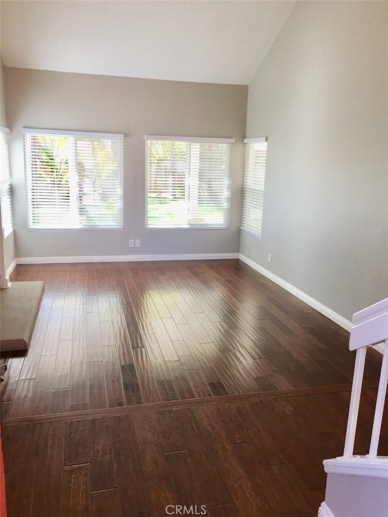 HUGE POOL- SIZED PRIVATE LOT!!!!! Step into This Beautiful Home Which Has Plenty to Offer. The Living Room Boasts Vaulted Ceilings and a Warm Stone Fireplace. This Beautiful Home Offers Hardwood Flooring on the Bottom Level and a Upgraded Kitchen with Granite Countertops, Stainless Steel Refrigerator, and Microwave. The Lovely Master Bedroom Offers a Large Walk-In Closet and Highly Upgraded Master Bathroom Adorned in Travertine Tiles. All Three Bedrooms are Upstairs. The Back Yard Includes a Slatted Patio Cover Plus and Additional Sitting Area. Refrigerator is provided for tenant's use.