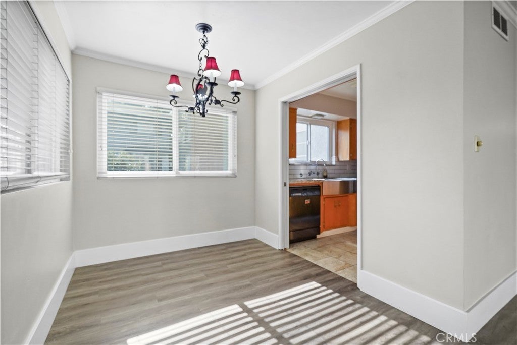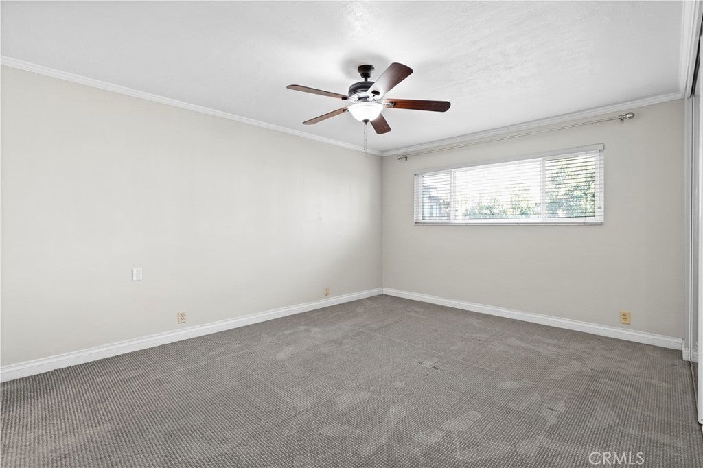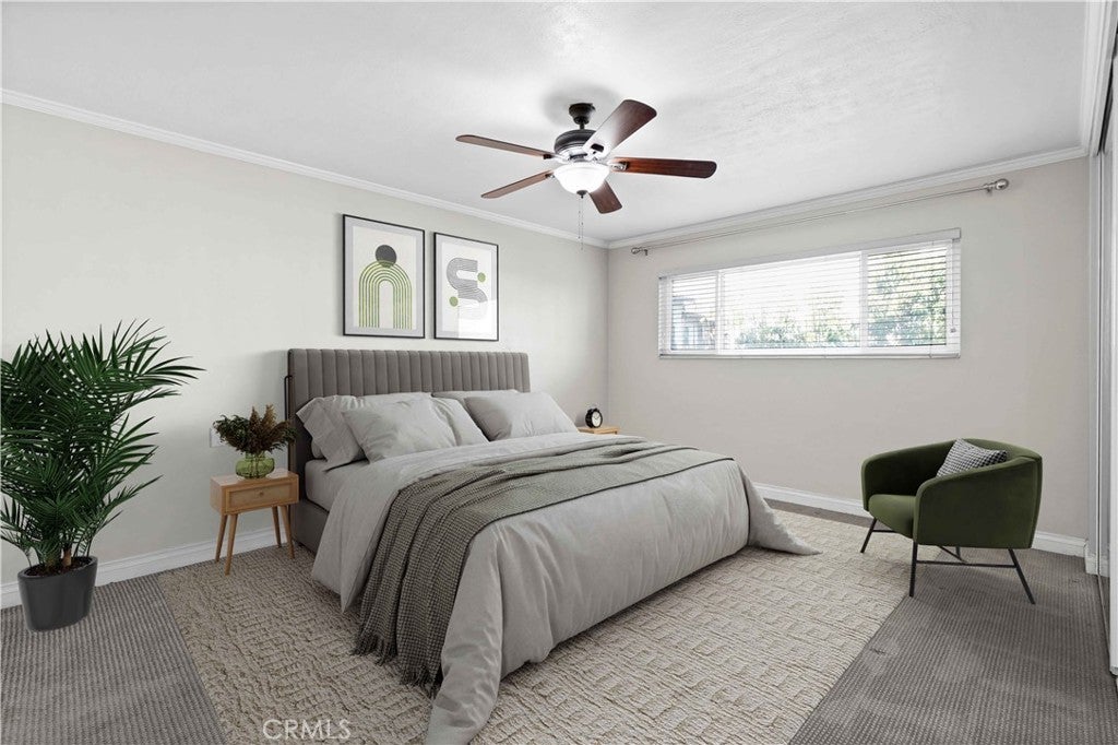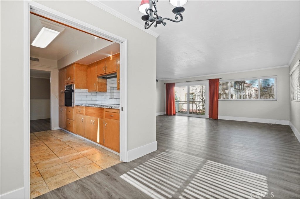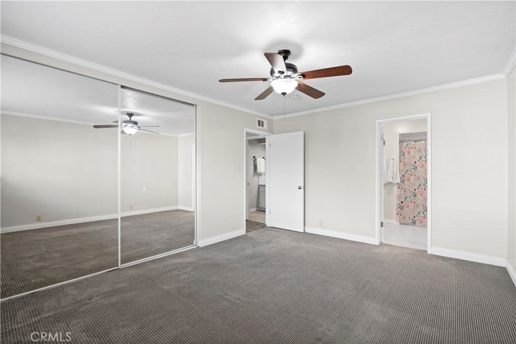 Welcome to Beverly Park Condominiums located in the Highly Coveted area of North Whittier. This gated community is in close proximity to the Whittier Greenway Trail, Beautiful Whittier Hills, and Historical "Uptown" Whittier which offers indoor/outdoor dining, speciality shops, live music venues, and more. The condominium is an end unit and is so spacious. Once you enter this two bedroom two bath home you will be delighted with the upgrades and the floor plan. The formal entry has laminate flooring and beautiful white wainscoting. The galley kitchen has been upgraded and features lots of cabinet space, granite countertops, a farm sink, all black appliances, and tile flooring. There's a separate dining area and the living room is huge! In the living room there's enough space to set up a home office, kids play area, a gaming area, etc. There's a primary bedroom with an en-suite bathroom that features new tile flooring and a new vanity. The additional bedroom is just as roomy as the primary bedroom. Both bedrooms are carpeted and have large closets with mirrored closet doors. Other fantastic features in this home include: dual pane windows and slider, crown molding throughout, lots of storage, ceiling fans, new water heater, and a new forced air heating unit and a/c condenser. All the major components have been upgraded and/or replaced. There's a community laundry room where the owners can use the machines at no cost. Did I mention that the HOA pays for all utilities except electricity. A very rare feature is this unit comes with 2 private parking spots, directly across from the elevator, in a gated subterranean parking structure. (the majority of the units have only 1 parking spot) In the back of the complex there's gated parking, a grassy area for the kids to play, and an avocado tree for all to enjoy! This pet friendly complex is just minutes away from the 605, 60, 10, and 5 freeways.