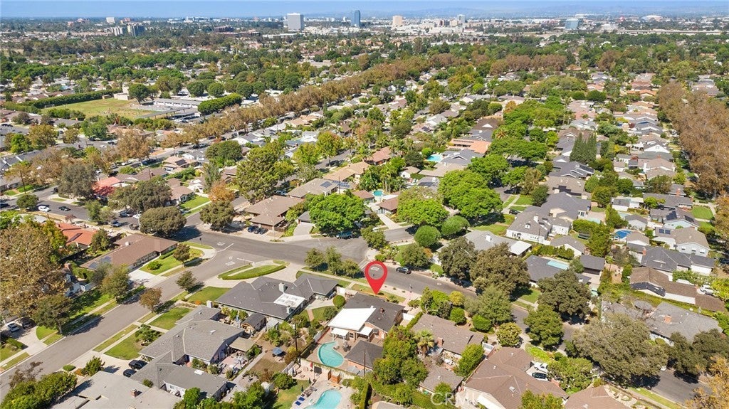 Welcome to this stunning single-story residence located in the highly sought-after West Floral Park neighborhood of Santa Ana. This beautifully maintained home blends timeless charm with modern convenience, featuring hardwood floors, a spacious open floor plan, and fresh interior paint throughout. The inviting living and dining areas are enhanced by a skylight that fills the space with natural light, along with a cozy fireplace. The family room provides an ideal setting for gatherings and includes custom built-in bookcases for both style and functionality. The kitchen is thoughtfully designed with elegant Caesarstone countertops, stainless steel appliances, slate flooring, and plenty of wood cabinetry. The home offers a comfortable and private layout with well-appointed bedrooms featuring window shutters, a bathroom with a walk-in shower, and a second full bathroom with a bathtub. A convenient indoor laundry area adds everyday practicality. Additional highlights include central air conditioning with brand-new air ducts, providing efficient heating and cooling year-round. Step outside to enjoy Southern California living at its best with a low-maintenance backyard featuring pavers and a sparkling swimming pool—perfect for relaxation or entertaining. The long driveway provides ample parking and leads to a detached two-car garage. Situated in the heart of West Floral Park, one of Santa Ana’s most beautiful and historic neighborhoods, this home is surrounded by tree-lined streets, classic architecture, and a strong sense of community. Enjoy nearby parks, and neighborhood events that make this area one of the most desirable places to call home.