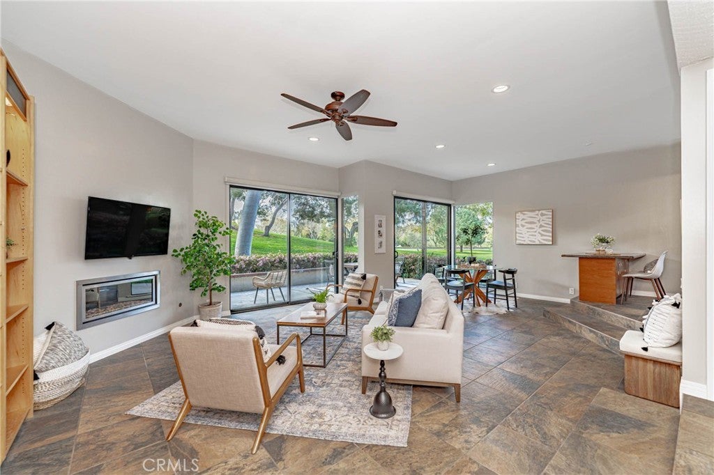 Located in the sought after community of Rancho San Joaquin. This tastefully remodeled single level corner unit offers a 2 bedroom, 2 bathroom with a 2 car detached garage. Located close to UCI, a top 10 public university in California and the award winning prestigious University High School. As you enter, you will enjoy the open floor plan with high ceilings and an abundance of natural lights. Enjoy the open patio overlooking the lush green belt and sprawling Mason Park across the street. Each of the bedrooms is a private retreat, complete with its own en-suite upgraded bathroom, a thoughtful touch for comfort and convenience. Both bedrooms feature brand new Luxury Vinyl Plank flooring which flows with the Flagstone tiles throughout the residence ensuring a modern Luxury and low-maintenance living experience. Recessed lighting throughout adds a touch of elegance, creating a warm and inviting ambiance. The heart of the home—the kitchen—boasts granite counter top and sleek stainless steel appliances. Additional highlights include a 2-car garage with ample storage space and a newer garage opener. The community offers resort-like amenities, including pools, spas, and an exclusive golf course. It’s not just a place to live; it’s a lifestyle! An opportunity to embrace tranquility and convenience. Close to freeway and shopping.