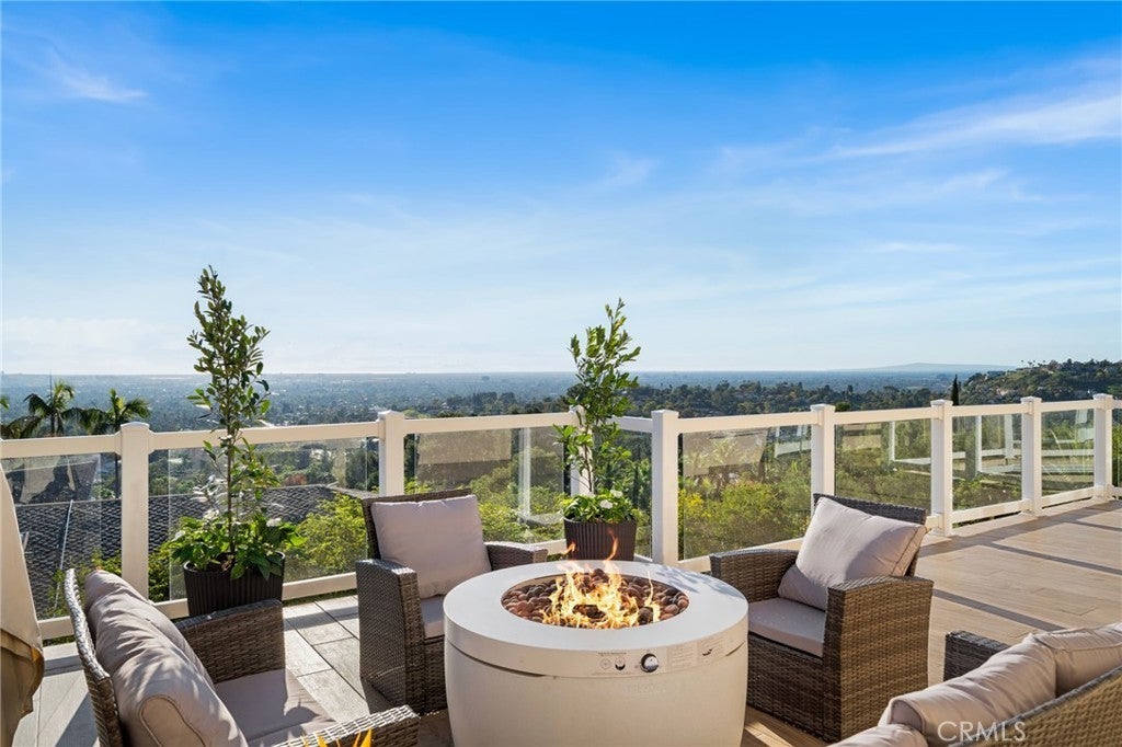 Behind private gates in the coveted enclave of Cowan Heights, this landmark estate—enhanced by over $1,000,000 of major renovations completed from 2023–2025 (see amenity sheet suplement). This home offers exceptional privacy, prestige, and sweeping panoramic views from nearly every room. Toughtfully reimagined with elevated finishes, modernized systems, and smart-home technology, it is ideally positioned in the Linda Vista Estates—an exclusive gated community of only 15 custom homes—showcasing dramatic city lights, Catalina horizons, and unforgettable sunset skies. Spanning 6,544 square feet on a one-acre lot, the home blends timeless architecture with refined luxury, introduced by grand entry doors, soaring ceilings, polished travertine floors, and expansive walls of glass that frame the views and set the tone for elevated yet comfortable living. Major upgrades include a redesigned chef’s kitchen with Sub-Zero and Wolf appliances, expansive quartz counters and floor to ceiling cabinets, fully renovated baths with a Toto Neorest, extensive lighting and electrical enhancements, and a renovated five-car garage with terrazzo flooring. The main level is perfectly suited for entertaining and everyday life, featuring a formal living room oriented to the skyline, a welcoming dining room ideal for intimate dinners or larger occasions, a chef’s kitchen with casual dining, and a spacious great room complete with fireplace and entertainer’s bar. The primary suite is a true retreat with its own fireplace, spa-inspired bath, custom walk-in closet, and doors opening to the main viewing balcony for seamless indoor-outdoor living. An elevator and dual staircases lead to the lower level, offering a large bonus room, secondary bar area, two additional bedrooms and 2.5 bathrooms, plus an oversized 5-car garage with lift and an additional bath—ideal for collectors and enthusiasts. Upstairs, an additional en-suite bedroom and beautifully situated office loft deliver inspiring, elevated views across Orange County. Outdoors, enjoy year-round sunsets and open-air living on an expansive wraparound deck and observation lookout capturing the full sweep of the coastline and beyond. A rare offering in one of Orange County’s most prestigious hillside neighborhoods—served by award-winning Tustin schools—this is a home that must be experienced to fully appreciate its scale, setting, and significance. Redisigned for efficiency and has low operating and maintenance costs comparatively.