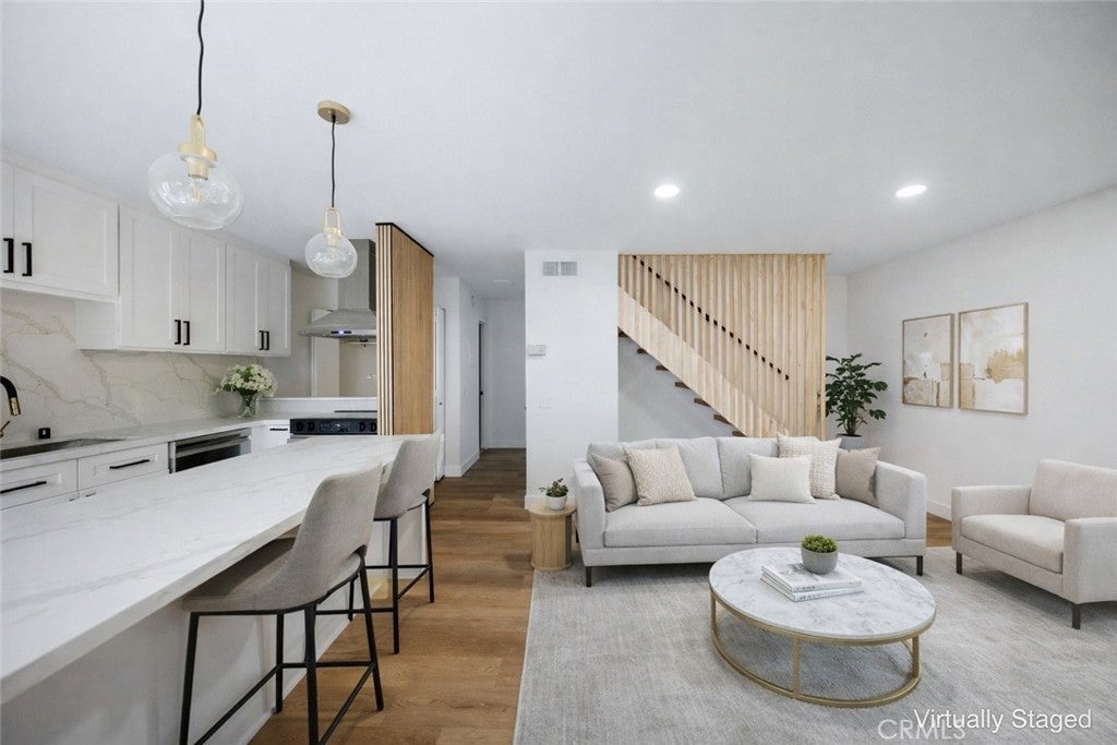 Beautifully updated two-story townhome-style condominium located in the highly sought-after Casa Del Sol community in the heart of Monterey Park. This move-in-ready residence offers 3 bedrooms and 2 bathrooms with approximately 1,232 square feet of well-designed living space, blending modern finishes with practical comfort. The home has recently been extensively renovated and features a brand-new kitchen, upgraded bathrooms, new flooring throughout, and new contemporary countertops, giving the property a crisp, modern feel. For convenience, it offers a private enclosed front good size patio. Inside, high ceilings and large windows fill the home with natural light, creating an open and inviting atmosphere. The main level includes a generous size bedroom, a full bathroom, and a convenient laundry area. Upstairs, you’ll find two additional bedrooms and a shared full bathroom, offering a functional layout ideal for a variety of living needs. Residents enjoy access to a sparkling community pool. The property also includes two assigned parking spaces (#61 & #62) along with two overhead storage units for added convenience. Ideally situated near schools, public transportation, shopping, and dining, this turnkey home offers exceptional value in a prime Monterey Park location and is ready for its next owner.