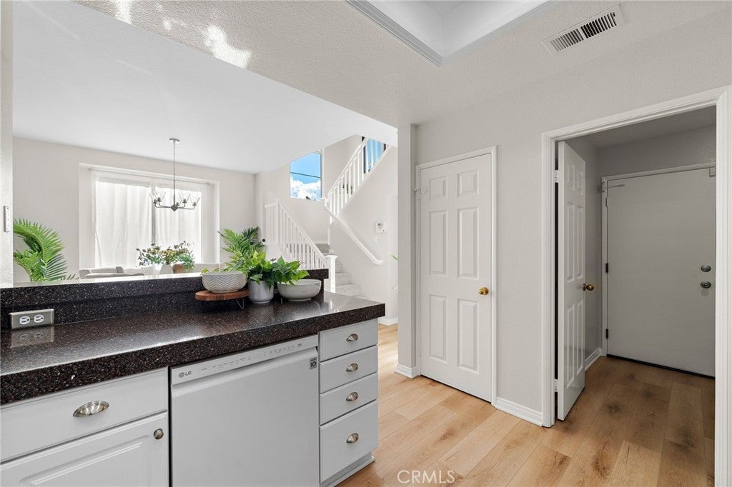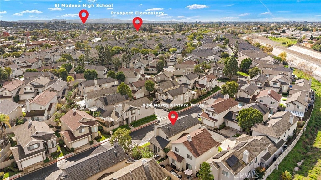Welcome to 834 Kintyre, a beautifully updated end-unit townhouse-style condo in the gated Stratford of Huntington community. This semi-detached home shares only one partially attached wall and features a wraparound backyard, offering added privacy and outdoor living space. Recently upgraded with new carpet, luxury vinyl plank flooring, fresh paint, upgraded LED lighting, and refreshed bathrooms, this move-in ready home is light, bright, and inviting. The open dining area is filled with natural light and flows into a clean, modern kitchen with warm tones. The cozy living room with gas fireplace creates a welcoming space for relaxing or entertaining. Upstairs, the spacious primary suite features vaulted ceilings, a walk-in closet, and a primary bathroom with separate soaking tub and walk-in shower. Two additional bedrooms and two bathrooms provide comfortable living and flexibility for a growing family, home office, or guests who will love to visit. The finished two-car garage has been recently upgraded with epoxy flooring, fresh paint, and hexagon LED lighting, ideal for car enthusiasts or a workshop. Resort-style community amenities include two swimming pools, spa, clubhouse, and gated access, with sidewalks throughout for walking. Located near well-rated schools, shopping, dining, bike and walking trails, and easy freeway access, this home offers convenience, comfort, and lifestyle in the heart of Orange. Enjoy nearby attractions—or simply relax in a beautiful place to call home.