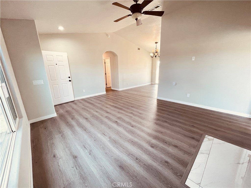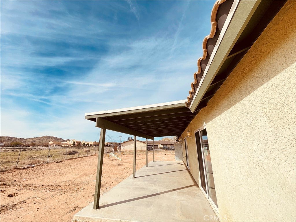 Welcome to 20891 Thunderbird Road in Apple Valley, offering 3 bedrooms 2 bath with a bonus room that can be used as a 4th bedroom or office space. A refreshed single-story home that blends modern finishes with the wide-open feel of High Desert living. Set on a generous lot, this property immediately stands out with its classic tile roof, clean stucco exterior, and expansive frontage that offers ample space for parking, toys, or future landscaping enhancements. Inside, the home opens to a bright and airy layout with brand-new wood-look flooring that flows seamlessly throughout the main living areas. The living room is spacious and inviting, centered around a cozy fireplace that adds warmth and character, while large windows bring in abundant natural light and frame views of the outdoors. Neutral paint tones and recessed lighting create a clean, contemporary backdrop that makes the space feel both comfortable and move-in ready. The kitchen is designed to impress with rich wood cabinetry, granite countertops, and a stylish tile backsplash. Modern stainless steel appliances and a functional layout make it ideal for everyday cooking as well as entertaining. Adjacent sliding glass doors lead directly to the backyard, providing an easy indoor-outdoor connection and plenty of natural light in the dining area. Throughout the home, thoughtful updates such as ceiling fans, updated fixtures, and refreshed finishes enhance both comfort and efficiency. The generous lot offers endless potential, whether you envision outdoor entertaining, a garden, recreational space, or room for additional improvements. Located in a desirable Apple Valley neighborhood with convenient access to shopping, schools, and commuter routes, this home offers the perfect balance of space, style, and functionality.