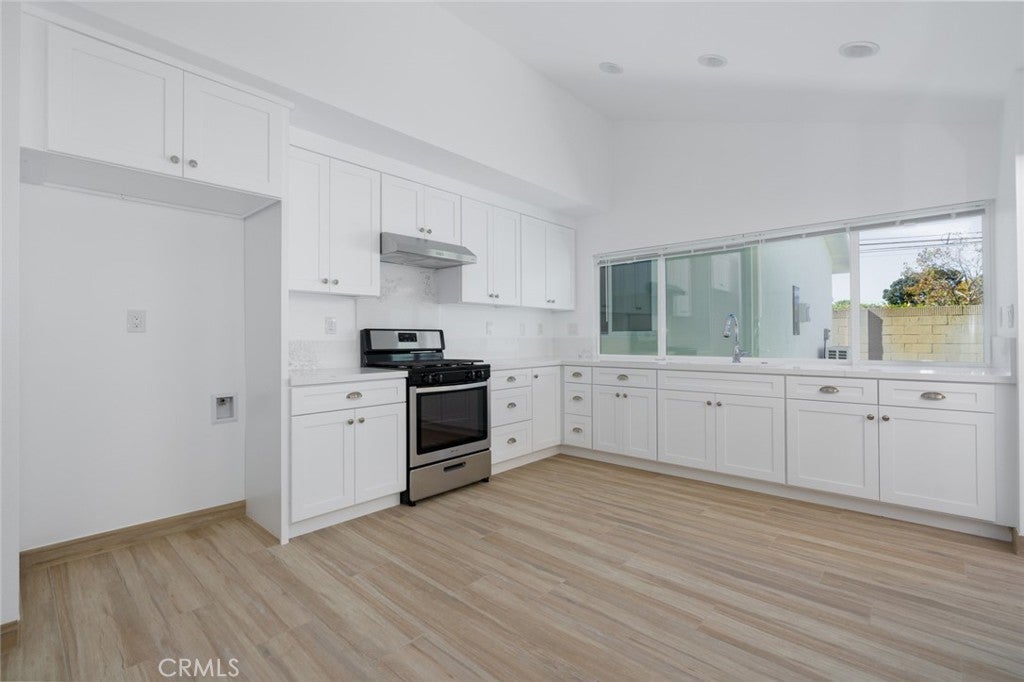 Completely remodel house with 4 bed, 2 bath, newer tile floor, newer stone counter, newer cabinets, new paint, newer window coverings, and stainless steel appliances, attached 2 car garage with laundry hook ups, long driveway.