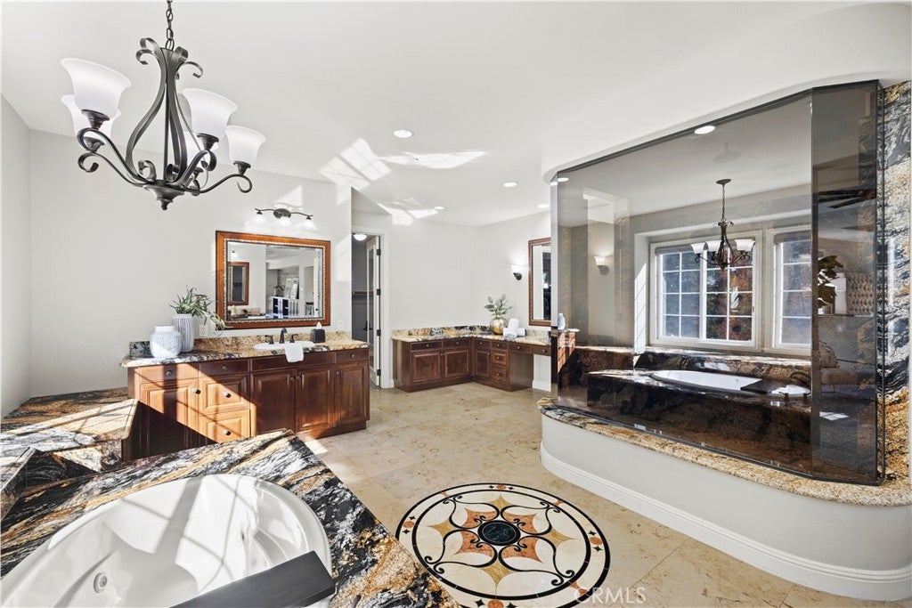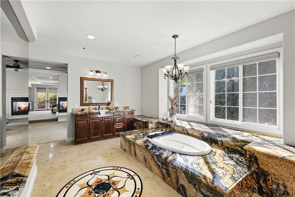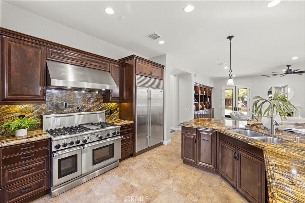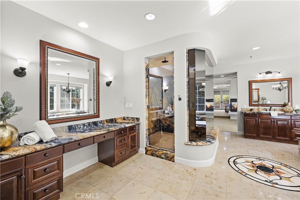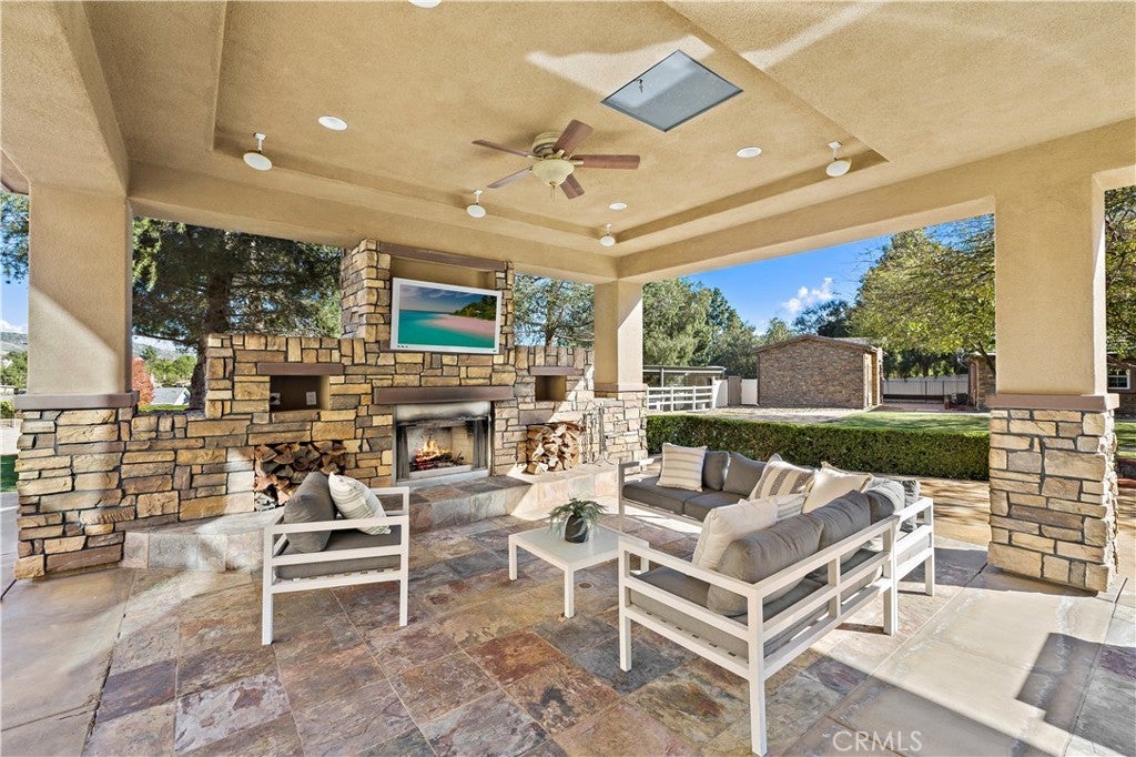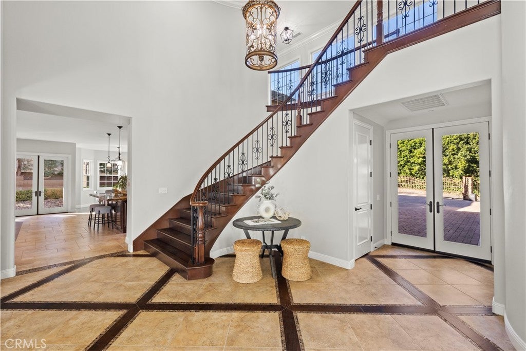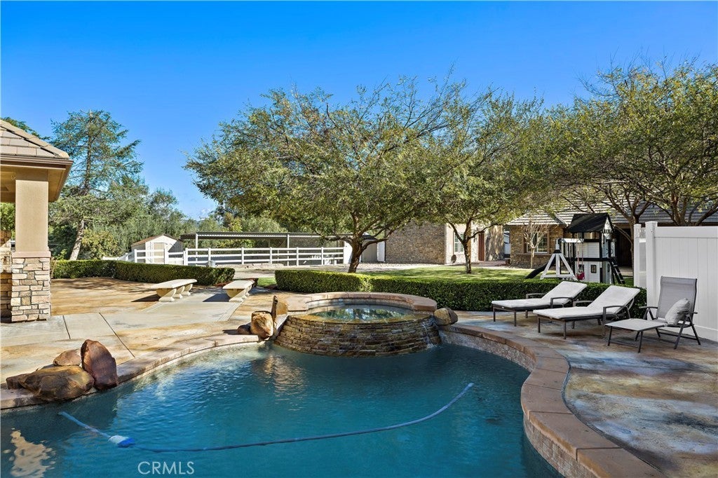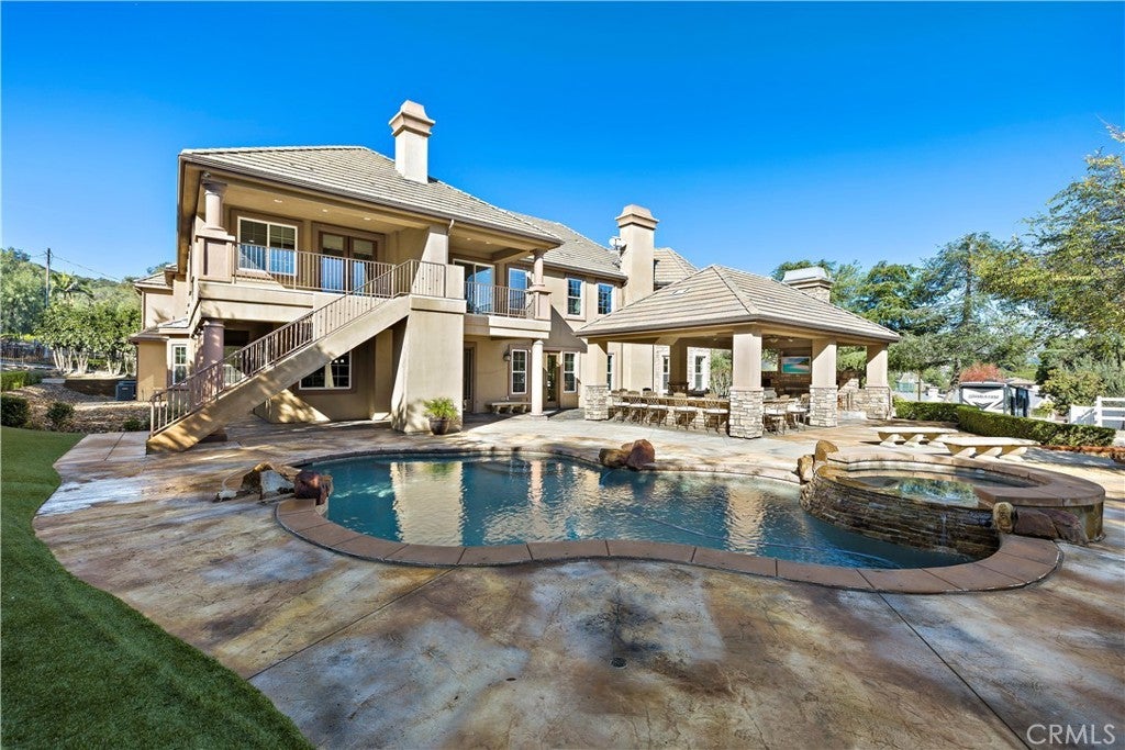 Beautiful equestrian estate and two additional guest homes! The 1.58 acre grounds feature a 6,100 ft main home, and two guest homes making this the perfect private compound complete with salt water pool, outdoor lanai, space for a large equestrian arena and more. The main residence features 5 bedrooms and 6 baths, and a separate office with beautiful views of the grounds. This stunning open floor plan estate features high ceilings, custom stone flooring, custom fireplaces, and a grand primary suite complete with wet bar and double sided fireplace and sitting area. Stepping into the luxurious en suite primary bathroom you will find a multi- head shower and soaking tub, large walk-in closet, his and hers sinks and vanity. The chef's kitchen with its large island offers a place to enjoy a meal and cook for 50 of your closest friends. Thermador appliances, warm granite counters, Sub Zero refrigerator, pot filler and two separate walk-in pantries. The entire home is brilliantly designed and offers abundant natural light and designer touches throughout. The multi zone climate control, iPad controlled security system, multiple gathering spaces all strike a brilliant balance of luxury and technology. Outside in the covered loggia you are sure to enjoy the built in BBQ, bar and fireplace perfect for catching a game on the weekends. Across the low maintenance turf lawn is the stand alone 1,200 ft 2 bedroom 2 bath guest house. The pool house is perfect for afternoons by the pool, a quick workout or just a separate space to enjoy with friends. Orange Park Acres is a vibrant equestrian community in the heart of Orange County. OPA Christmas Parade runs right past the home, surrounded by miles of equestrian trials and just a quick drive to local attractions, freeways and shopping.
