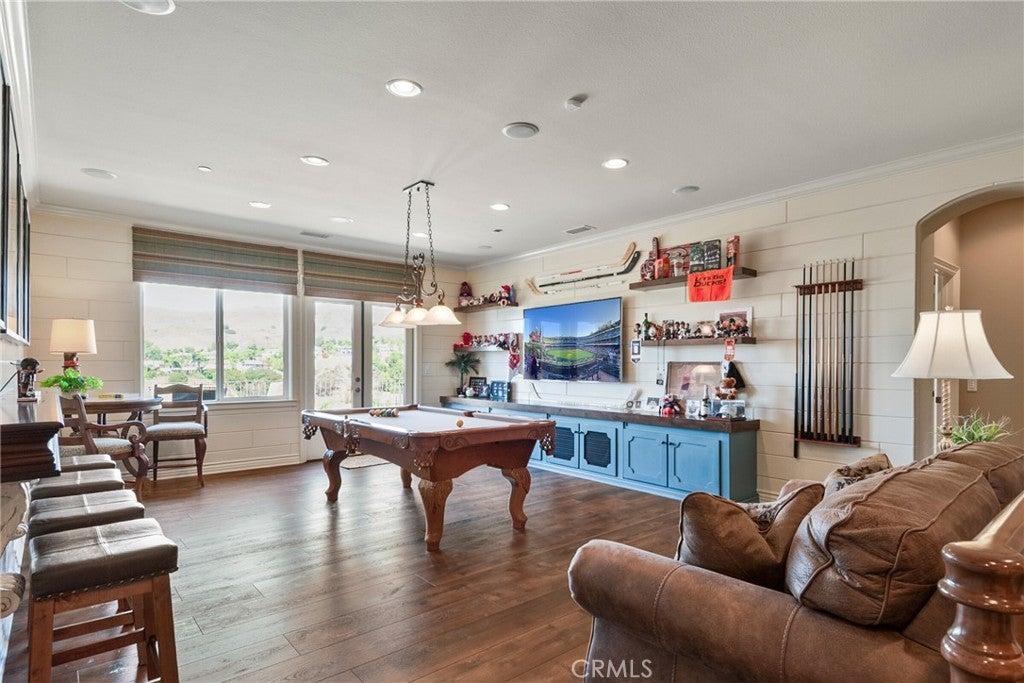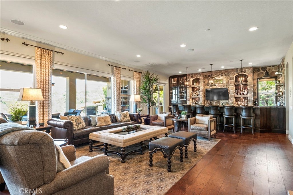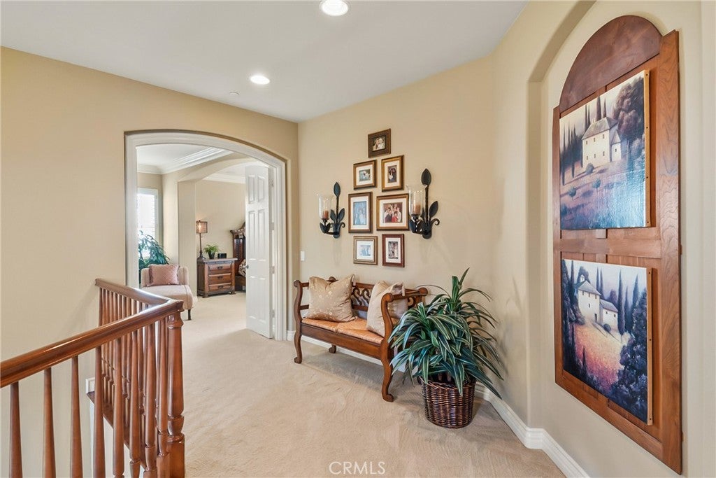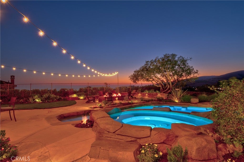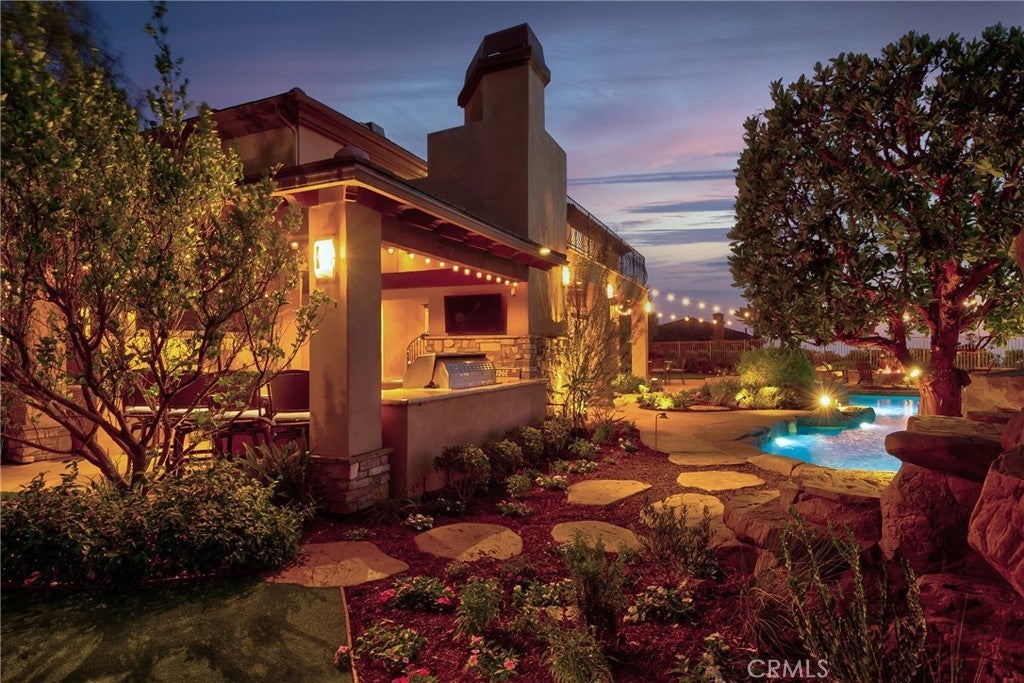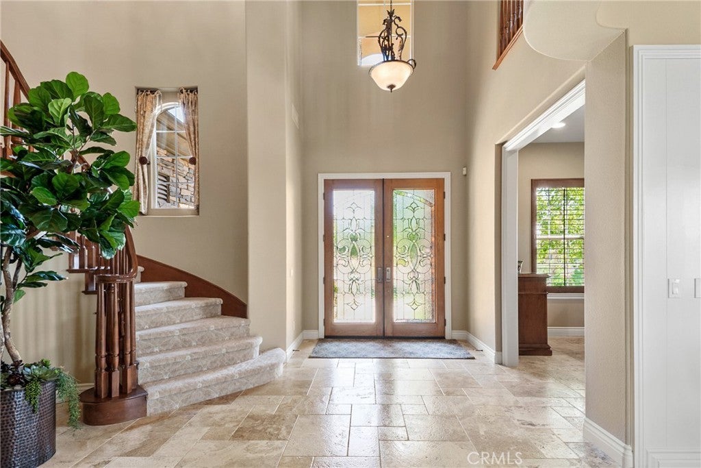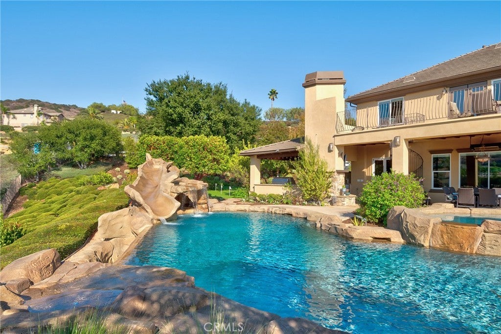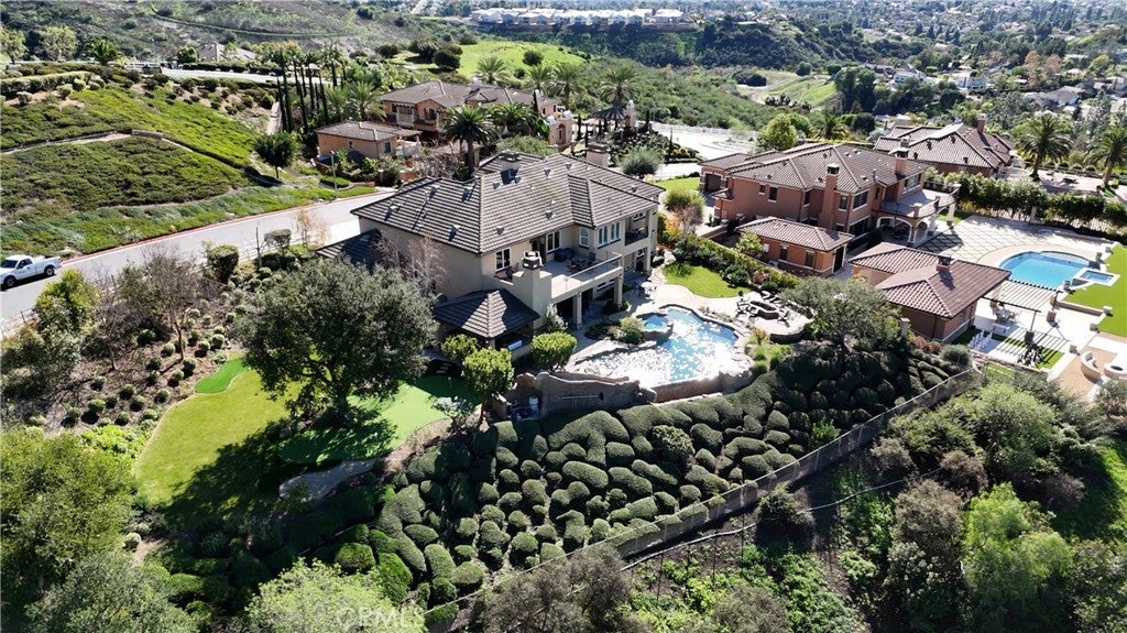 Welcome to this luxury estate in the highly sought after Mt. San Antonio neighborhood of Yorba Linda, situated on private streets with approved plans for a gated entrance to ensure even more privacy and security. Available for the first time on the market, this Plan 5 former model home is the largest floorplan offered & sits on one of the best lots in the community, a 1.06-acre private cul-de-sac property with ADU and RV potential, zoned for horses, & surrounded by a beautiful neighborhood of horse trails, hiking, & biking paths that back up to Chino Hills National Forest. The home spans 5,734 sq ft & offers 5 spacious en-suite bedrooms and 6 baths. Inside, you’ll find beautiful flooring throughout & professional designer finishes. The double door entry with custom beveled glass opens to an entertainer’s dream floor plan with 2 staircases & multiple living & entertaining spaces. The chef’s kitchen boasts a large island with seating and a prep sink, top of the line appliances including Sub Zero, Thermador, Bosch, and U-line, plus a walk-in pantry. The home also features a custom full bar with seating for six, a leathered quartzite bar top, wine & beverage refrigerator, Scotsman cocktail ice maker, cigar humidor, & a copper sink, with La Cantina bi-fold doors opening to the expansive patio. Additional highlights include a 4-car garage with epoxy floors, an upstairs bonus room with a large deck and fireplace, a hidden A/V room under the stairs, & a fully integrated Control4 whole-house automation system managing lights, HVAC, music, TVs, alarm, cameras, pool equipment, & Lutron window shades. Speakers throughout the home, garage, patios, BBQ area, putting green, and pool areas ensure seamless indoor-outdoor living. The backyard is a private resort like retreat, complete with an infinity edge rock pool featuring a water slide, grotto with jets, waterfalls, water features, & spa, as well as two lava rock firepits, 5 fireplaces total throughout the property & endless spaces to gather & entertain. Outdoor amenities include a kitchen and BBQ area with Viking appliances, a 2 tap kegerator, a 6-hole putting green with 2 sand traps & a chipping green, mature oak trees, fruit trees (lemon, orange, tangelo, lime, peach, plum and avocados), plus two garden boxes ready for spring planting. Stunning Catalina, Disneyland fireworks, & sunset views. With beautiful curb appeal, this home embodies luxury, privacy, and lifestyle. This is truly a dream property and a rare find.