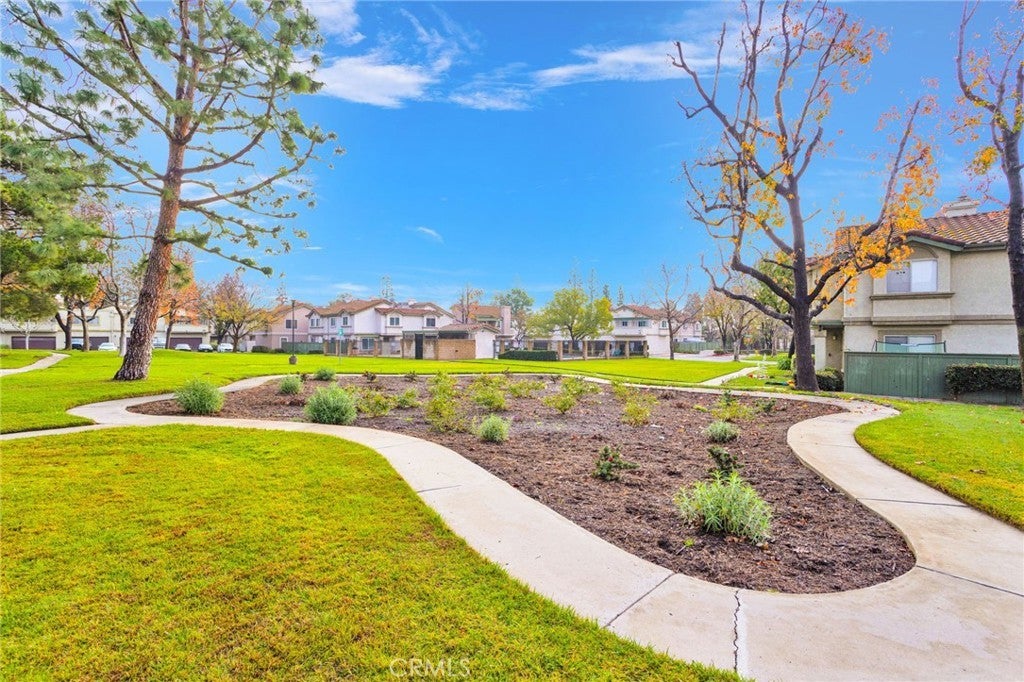 Welcome Home to Meadowood Village! Discover your tranquil retreat in this highly desirable end-unit condo, perfectly situated in one of Rancho Cucamonga's most popular communities. The journey begins at your private, fenced patio entry—the ideal spot for an outdoor BBQ, patio furniture, or a cozy vegetable garden. Step inside the bright, open floor plan, where soaring vaulted, beamed ceilings and a warm, inviting fireplace create the perfect atmosphere for gathering with loved ones. The open concept kitchen which includes built in microwave, gas range, and dishwasher. A covered balcony offers a peaceful spot and extension to your indoor living space to add additional patio furniture and a place to relax and enjoy your morning coffee while taking in the beautiful sunrise. The spacious primary suite feels like a true sanctuary with its own en suite bathroom and a walk-in closet. An attached 2-car garage provides convenience and plenty of storage. The community amenities are second to none, featuring 2 pools, 2 spas, basketball courts, tennis courts, private park, and playground. In addition to all of the awesome amenities, the HOA also covers trash and water! Close to everything you need—shops, schools, and park and just a stone's throw from the dining and entertainment at Haven City Market. Start making memories here!