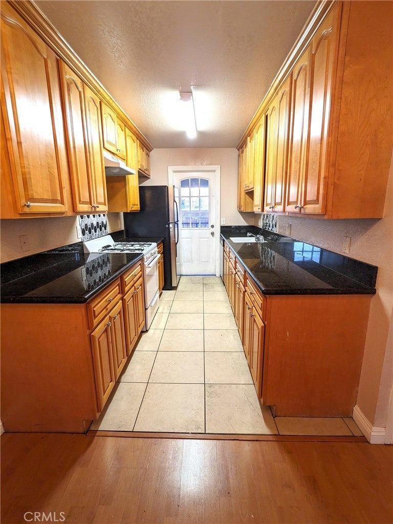 Contemporary 2 bed/ 2 bath top floor apartment with nice natural light and city views. Wood laminate and tile flooring throughout. Granite counters and wood cabinets in the kitchen; tile flooring and designer pedestal sinks in the bathrooms. The apartment includes range, refrigerator, dishwasher, and stackable laundry machine. It also features a private balcony and 1 garage parking space. Cats and small dogs are okay; service animals are welcome.