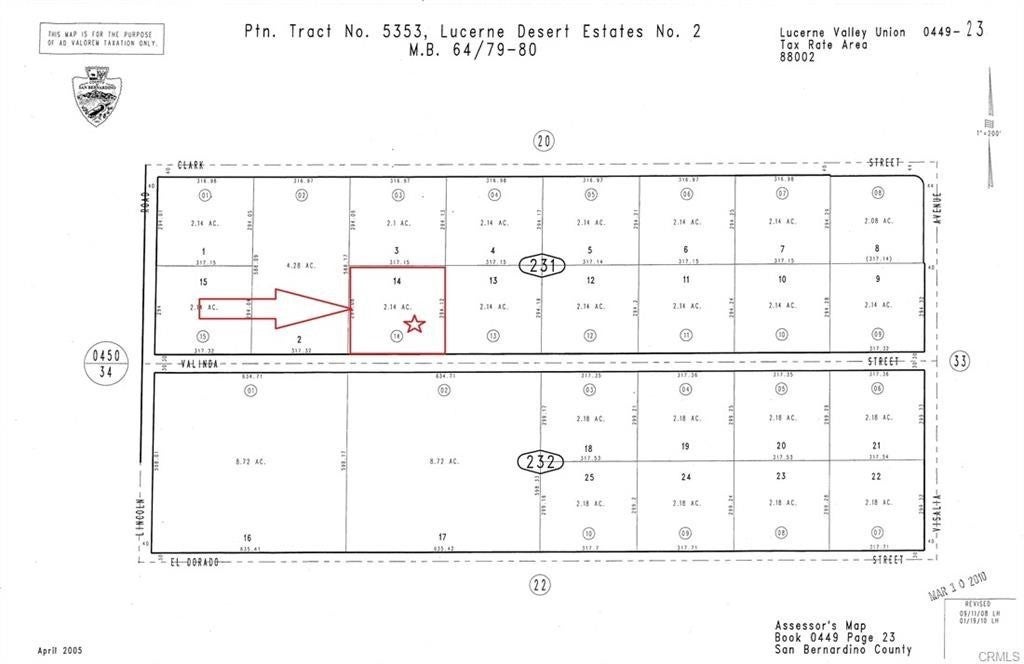 Opportunity in the high desert! This beautiful 2.14-acre lot sits at Valinda St. and Lincoln Rd in Lucerne Valley, just south of Hwy 247. With access via Valinda St. and power poles running along Lincoln Rd., this property is ready for your vision — whether that’s building a custom home, creating a desert getaway, or holding as a smart investment, there’s plenty of room to design your ideal layout while maintaining privacy, easy access to Apple Valley, Hesperia, Big Bear, Barstow, and Yucca Valley — Seller Financing Address: Valinda St. & Lincoln Rd, Lucerne Valley, CA 92356 APN: 0449-231-14-0000 ; Size: 2.14 Acres ; Zoning: LV/RL ; GPS Coordinates: 34.435228, -116.890403 ;LISTING ID: PW25126371