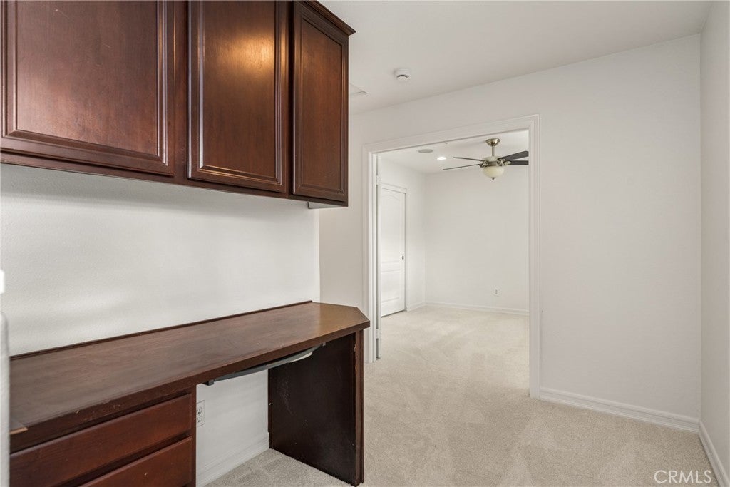 Welcome Home! This beautiful 3 bedroom plus loft home is located in Wolf Creek, a sought after neighborhood in Temecula. Conveniently situated near schools, shopping and dining, this well-maintained residence features an open floor plan, new carpet and paint, hardwood floors, and a cozy fireplace. The kitchen is equipped with granite countertops, a spacious pantry and ample counter space. The staircase leads to a versatile loft with a built-in desk and overhead storage, perfect for a home office or study area. This home also includes an indoor laundry area and two large secondary bedrooms with new carpet and generous closet space. The private primary suite features a large bathroom with dual vanities and sliding doors that open onto a balcony overlooking mature, well-maintained landscaping. Additional features include an attached two-car garage with direct interior access. As an end unit, this home offers privacy and natural light while providing access to the many amenities of the Wolf Creek Community. This is a wonderful opportunity that you don't want to miss!
