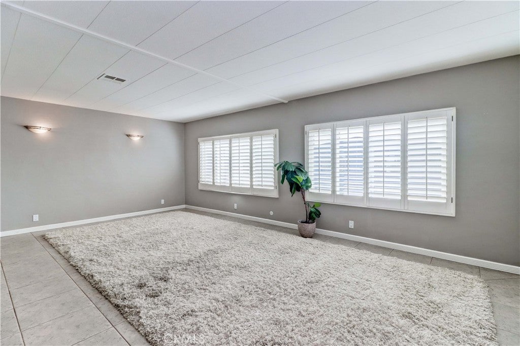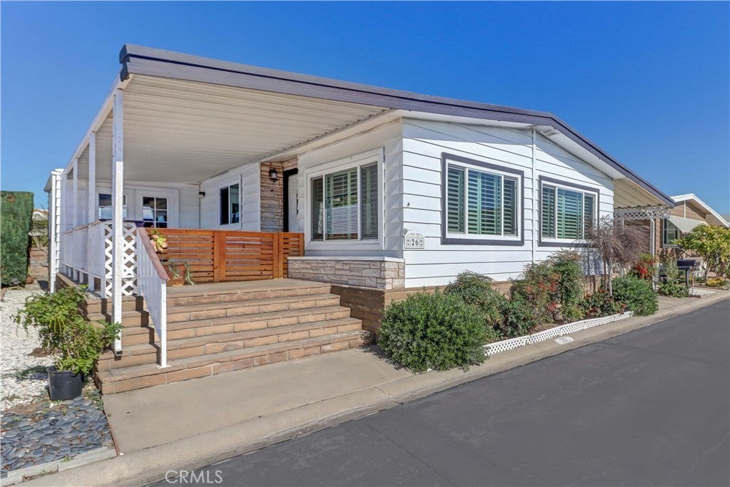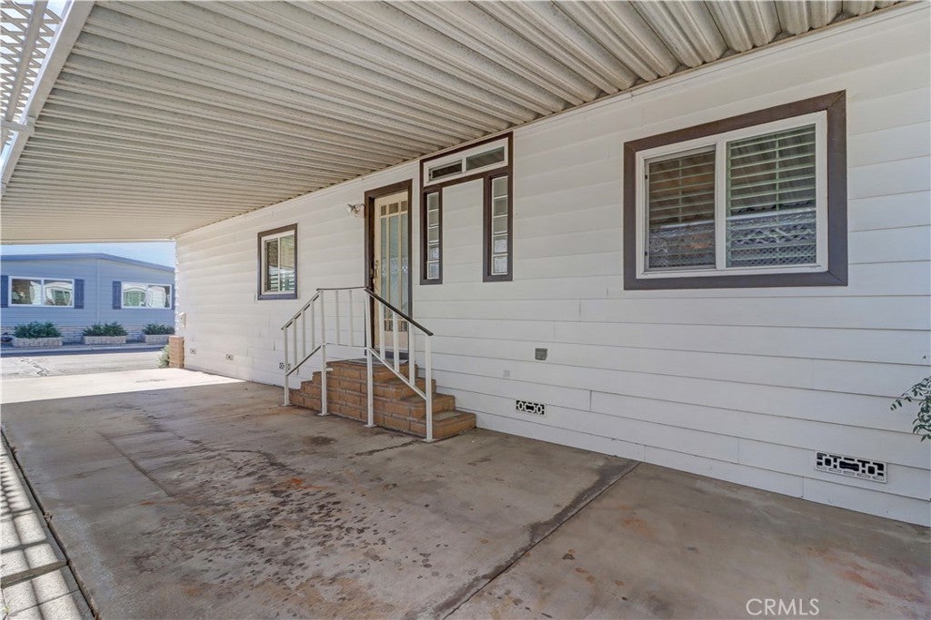 Welcome to this bright and inviting home with wonderful curb appeal, featuring a generously sized front patio perfect for morning coffee or relaxing afternoons. This peaceful 55+ senior community allows a second occupant aged 18 or older. Step inside to a spacious living room filled with natural light, complemented by well-maintained flooring, charming padded carpet, and an abundance of windows enhanced by newer shutters. The living room flows seamlessly into the dining area, which opens to the kitchen and an additional living space, creating a comfortable and functional layout ideal for everyday living and entertaining. The home offers two spacious bedrooms, each with its own attached bathroom, providing privacy and convenience. Out back, the yard presents endless possibilities whether you envision a garden retreat, outdoor entertaining space, or a personalized oasis. Additional highlights include a long carport with ample parking and two storage sheds for added convenience. Notable upgrades include a roof approximately 5 years old, a recently replaced A/C system (installed last year), and a tankless water heater, offering energy efficiency and peace of mind. Residents enjoy access to a beautiful community pool and jacuzzi, a well-appointed clubhouse, and a quiet reading room, perfect for relaxation and social gatherings.