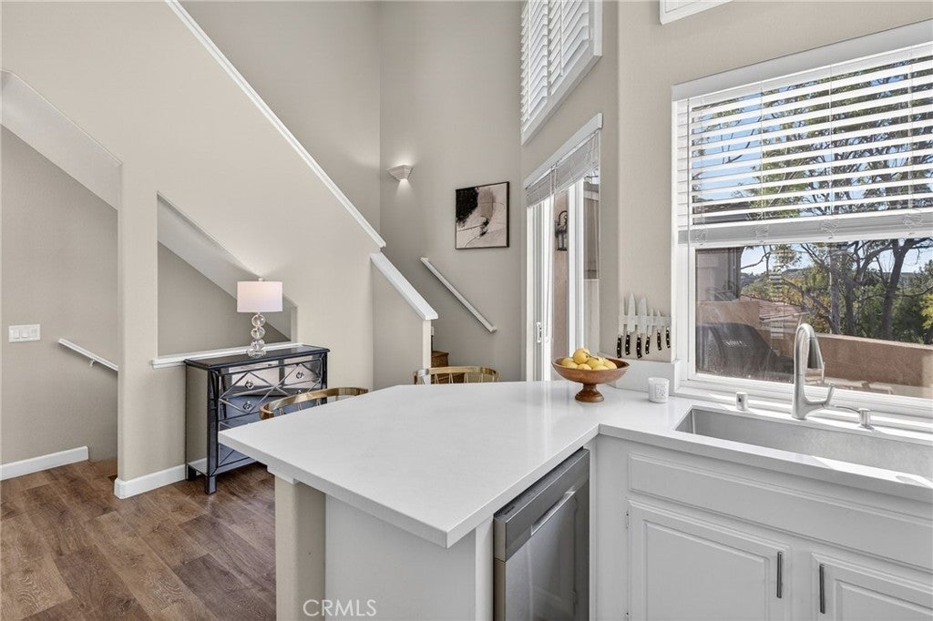 Gorgeous, largest floorplan, END UNIT, in beautiful Monaco with fabulous interior upgrades and a VIEW - originally constructed in 1997 and thoughtfully remodeled in 2019! Welcome to elevated Anaheim Hills living at its finest. Perched at the very top of the community, this stunning 3-bedroom, 3-bath luxury residence at 1036 Gibraltar delivers the perfect blend of privacy, style, and sweeping sunset views that few units can offer. From the moment you step inside, you’re greeted by an expansive, light-filled interior enhanced by premium upgrades — creating a refined yet inviting space ideal for modern living, entertaining, and everyday comfort. The open-concept design flows effortlessly, making this home equally perfect for hosting, working from home, or unwinding while enjoying glowing evening skies in the distance. In 2019, beautiful, designer-grade, vinyl flooring was added throughout as well.as shutters on every window. All new energy efficient windows and a new sliding door were also installed in 2019. The remodel also included new white quartz counters and new stainless appliances. There is a balcony right off the kitchen area thats great for BBQg and it enjoys colorful sunset views to the west. The formal dining room has a built-in hutch and the adjoining formal living room has a fireplace and several windows bringing in great natural light. The main level has primary suite with remodeled ensuite, and second bedroom across from full bath #2, along with main living area and upstairs is 3rd bedroom and 3rd full bath with a view! This layout with three generously sized bedrooms, and 3 remodeled baths offers comfort and convenience for families, guests, or multi-generational living. A private, two-car garage adds both security and practicality — a highly-valued feature in luxury condo living. Step outside and enjoy resort-style amenities including a beautiful community pool 1 block away — perfect for sun-soaked weekends or evening swims, and tennis courts about 100 yards away. Located in one of North OC's most desirable hillside communities, this home offers easy access to shopping, dining, hiking, fwys, and top-rated schools — all while maintaining a peaceful, upscale atmosphere that feels worlds away from the city below. This is more than a home — it’s a lifestyle upgrade. Rarely does a top-of-the-hill residence with sunset views, three full baths, and private garage come available. Come experience why 1036 Gibraltar is truly in a class of its own.