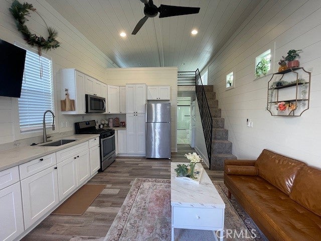 Welcome to 313 W 1st St, La Habra. Don't miss the opportunity to own this spacious tiny home! Spanning 399 sqft, it's situated in the all-ages City Trailer Park community. This centrally-located 2022 Back Porch home boasts a bedroom, a bathroom and a sizable loft, high ceilings, elegant plank flooring, quartz countertops, and indoor laundry with a washer/dryer. The bedroom features mirrored doors, and the home includes air conditioning and modern conveniences. It's within walking distance of parks, museums, markets, and restaurants.