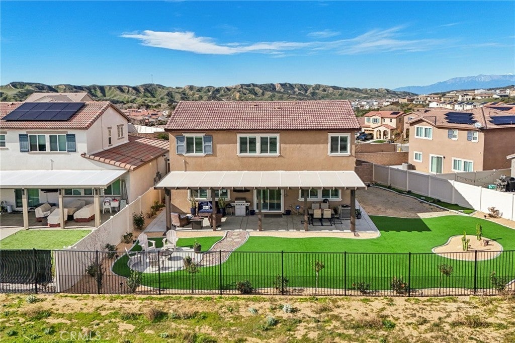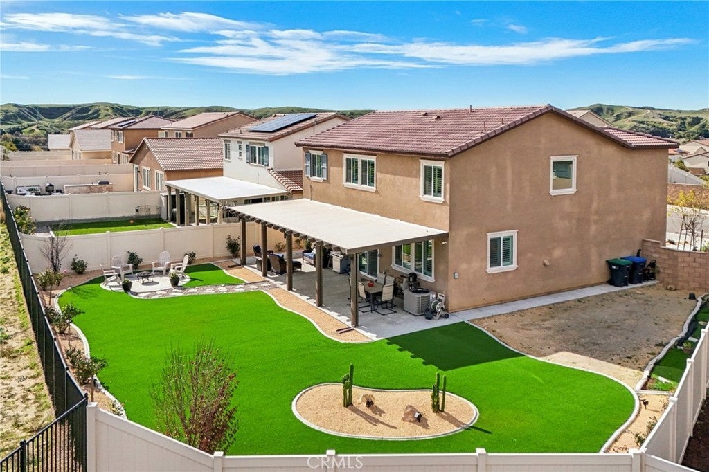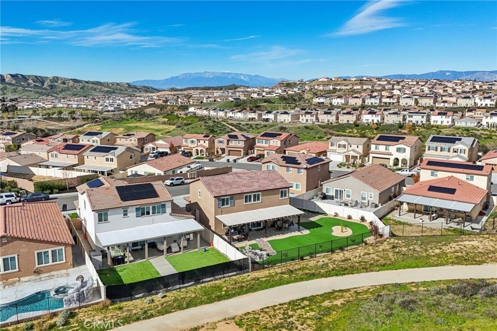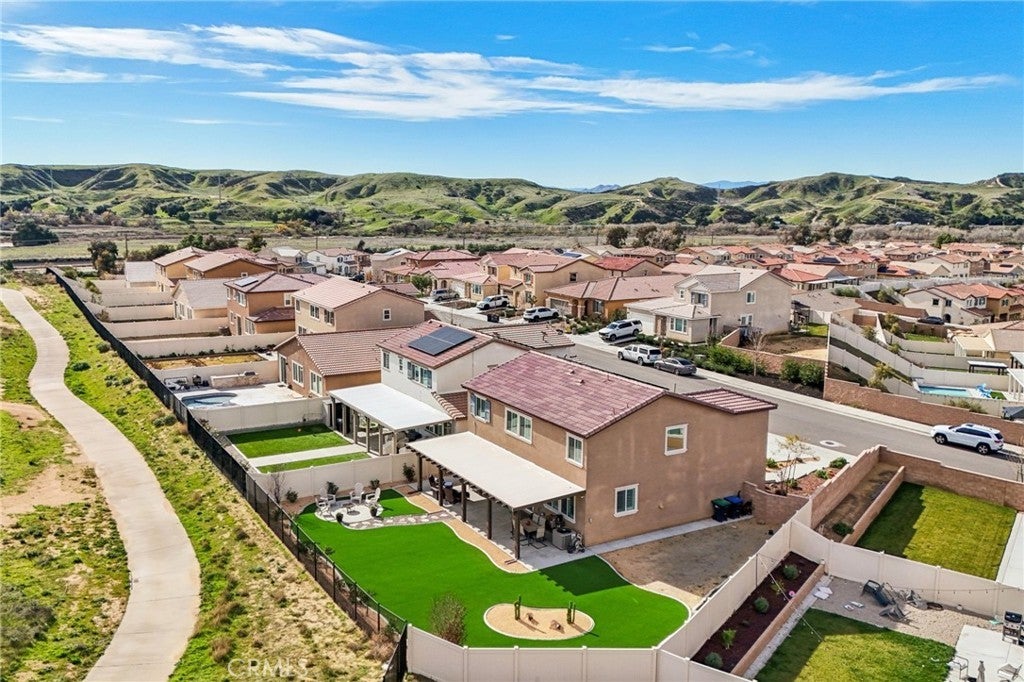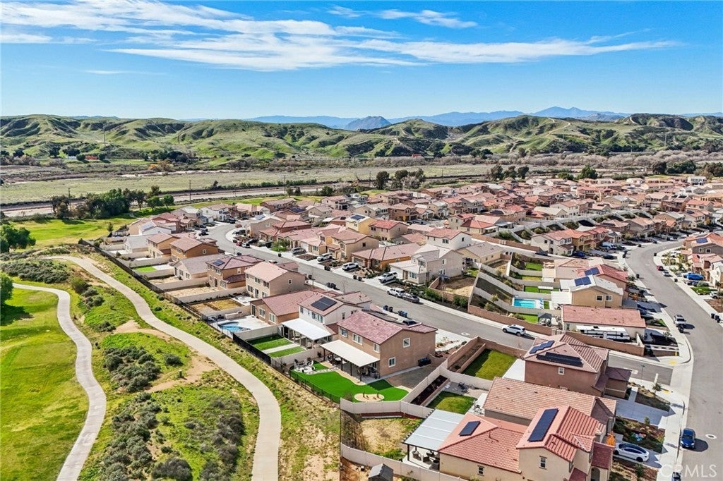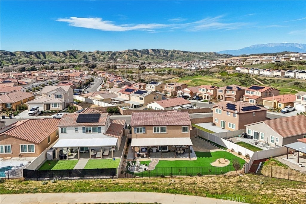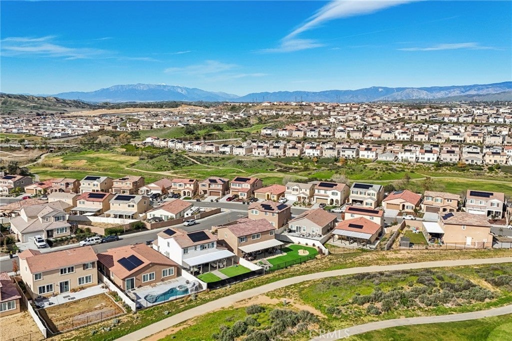 Welcome to The Fairway Community, where you can experience modern resort-style living at its finest. This breathtaking premium corner lot home sits on an expansive 7,815 sq. ft. lot overlooking The Legends GOLF COURSE with stunning MOUNTAIN VIEWS—a rare find in today’s competitive real estate market. Properties in this sought-after neighborhood consistently trend above average for both appreciation and desirability, making this an exceptional investment opportunity as well as a dream residence. The exterior features self-maintaining landscaping, including turf, decorative rocks, vinyl fencing, and drought-tolerant plantings, ensuring both excellent curb appeal and easy upkeep. The outdoor space is perfect for year-round entertaining, featuring an Alumawood patio cover with recessed lighting, ceiling fans, TV, and a dedicated BBQ and dining area—ideal for hosting gatherings or relaxing with loved ones while enjoying the scenic backdrop. Inside, you’ll find a bright, open 2,239 sq. ft. floor plan with four spacious bedrooms and three full bathrooms. A convenient main-floor bedroom and bath provide an ideal space for guests or multi-generational living. The chef’s kitchen is a showstopper, featuring white cabinetry, stainless steel appliances, quartz countertops, and a large island with designer pendant lighting and extra seating. Upstairs, a large loft offers flexible additional living space, while a well-appointed laundry room with extra storage adds everyday convenience. The spacious master suite offers picturesque views, a large walk-in closet, and a luxurious bathroom featuring dual quartz vanities, a soaking tub, and a walk-in shower, creating your own private retreat. Additional features include earth-tone luxury vinyl flooring, wood plantation shutters, recessed lighting, and ceiling fans throughout. This meticulously maintained home is truly move-in ready that includes a tankless water heater and "OWNED SOLAR!"—a major value in today’s energy-conscious market. Residents of The Fairway Community enjoy resort-quality amenities, including a clubhouse, gym, two sparkling pools, a jacuzzi, a splash pad, a playground, and picnic areas. Schedule your private showing today and secure your place in one of the area’s most desirable communities!