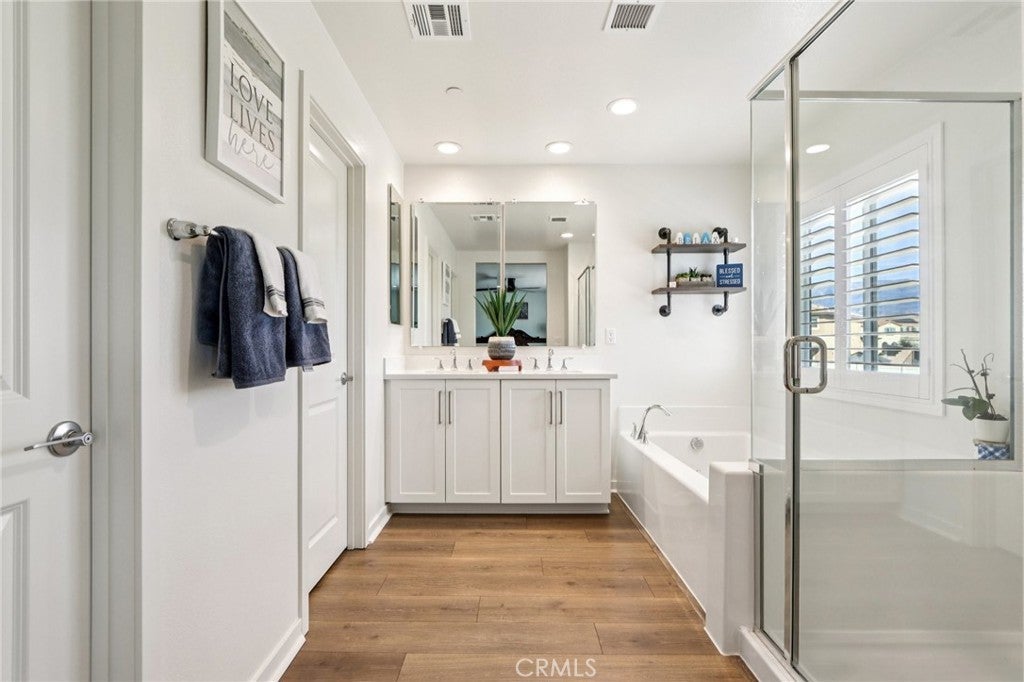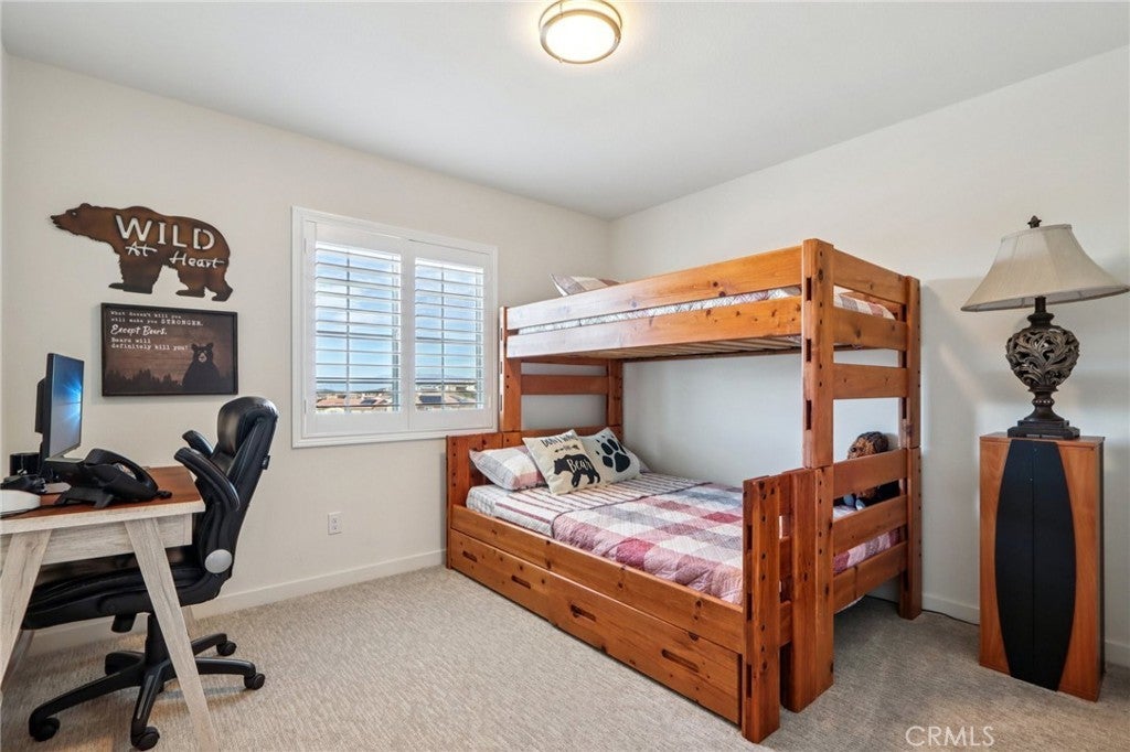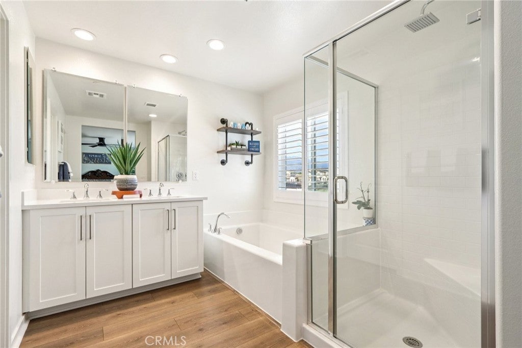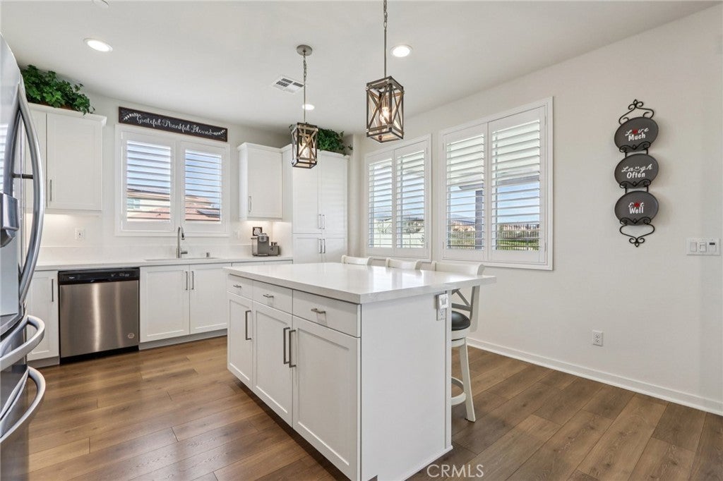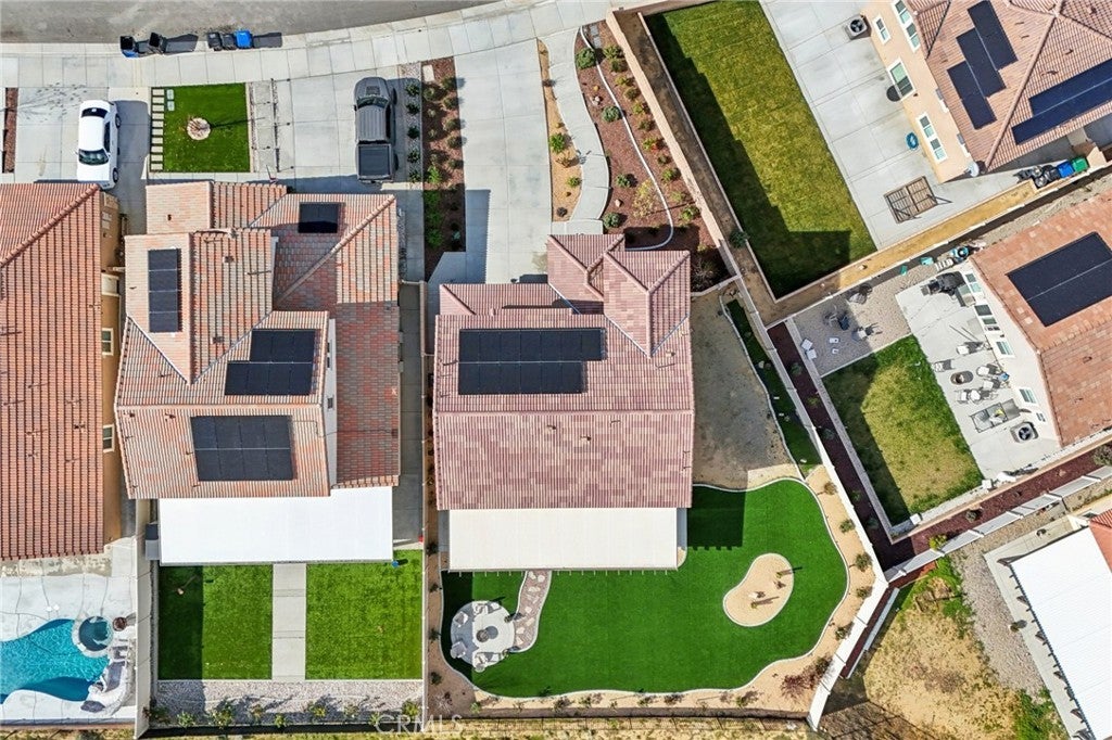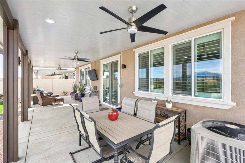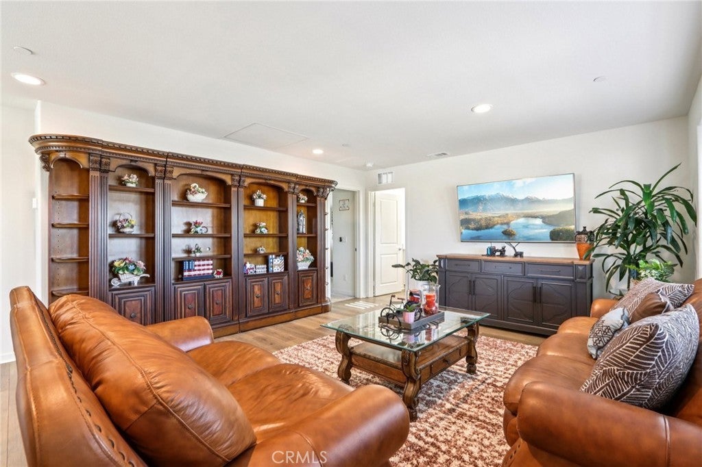 Welcome to The Fairway Community, where you can experience modern resort-style living at its finest. This breathtaking premium corner lot home sits on an expansive 7,815 sq. ft. lot overlooking The Legends GOLF COURSE with stunning MOUNTAIN VIEWS—a rare find in today’s competitive real estate market. Properties in this sought-after neighborhood consistently trend above average for both appreciation and desirability, making this an exceptional investment opportunity as well as a dream residence. The exterior features self-maintaining landscaping, including turf, decorative rocks, vinyl fencing, and drought-tolerant plantings, ensuring both excellent curb appeal and easy upkeep. The outdoor space is perfect for year-round entertaining, featuring an Alumawood patio cover with recessed lighting, ceiling fans, TV, and a dedicated BBQ and dining area—ideal for hosting gatherings or relaxing with loved ones while enjoying the scenic backdrop. Inside, you’ll find a bright, open 2,239 sq. ft. floor plan with four spacious bedrooms and three full bathrooms. A convenient main-floor bedroom and bath provide an ideal space for guests or multi-generational living. The chef’s kitchen is a showstopper, featuring white cabinetry, stainless steel appliances, quartz countertops, and a large island with designer pendant lighting and extra seating. Upstairs, a large loft offers flexible additional living space, while a well-appointed laundry room with extra storage adds everyday convenience. The spacious master suite offers picturesque views, a large walk-in closet, and a luxurious bathroom featuring dual quartz vanities, a soaking tub, and a walk-in shower, creating your own private retreat. Additional features include earth-tone luxury vinyl flooring, wood plantation shutters, recessed lighting, and ceiling fans throughout. This meticulously maintained home is truly move-in ready that includes a tankless water heater and "OWNED SOLAR!"—a major value in today’s energy-conscious market. Residents of The Fairway Community enjoy resort-quality amenities, including a clubhouse, gym, two sparkling pools, a jacuzzi, a splash pad, a playground, and picnic areas. Schedule your private showing today and secure your place in one of the area’s most desirable communities!