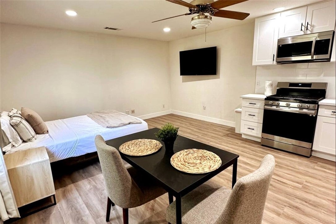 Unit #D - UTILITIES & WiFi INCLUDED!!! This property is a Studio/1 bath w/ walk in closet in a Single Family Home. Private space, private entrance with shared walls/roof along with Laundry in garage. Modern finishes, quiet location on a cul-de-sac street in a family neighborhood. Open floor plan living/dining area, kitchenette. The laundry is part of this lease (no charge) with 2 washers/2 dryers located in the garage. Easy to get laundry done fast! 1 Parking space in driveway (1st come 1st serve) or on street. Located just 1.1 miles from Cal State Fullerton. Tonys Little Italy is right behind this property, Albertsons just down the street. Very convenient location and great neighborhood. Close to 57 freeway too! Prefer single occupant or single w/minor. Single pet (cat or small dog) okay.