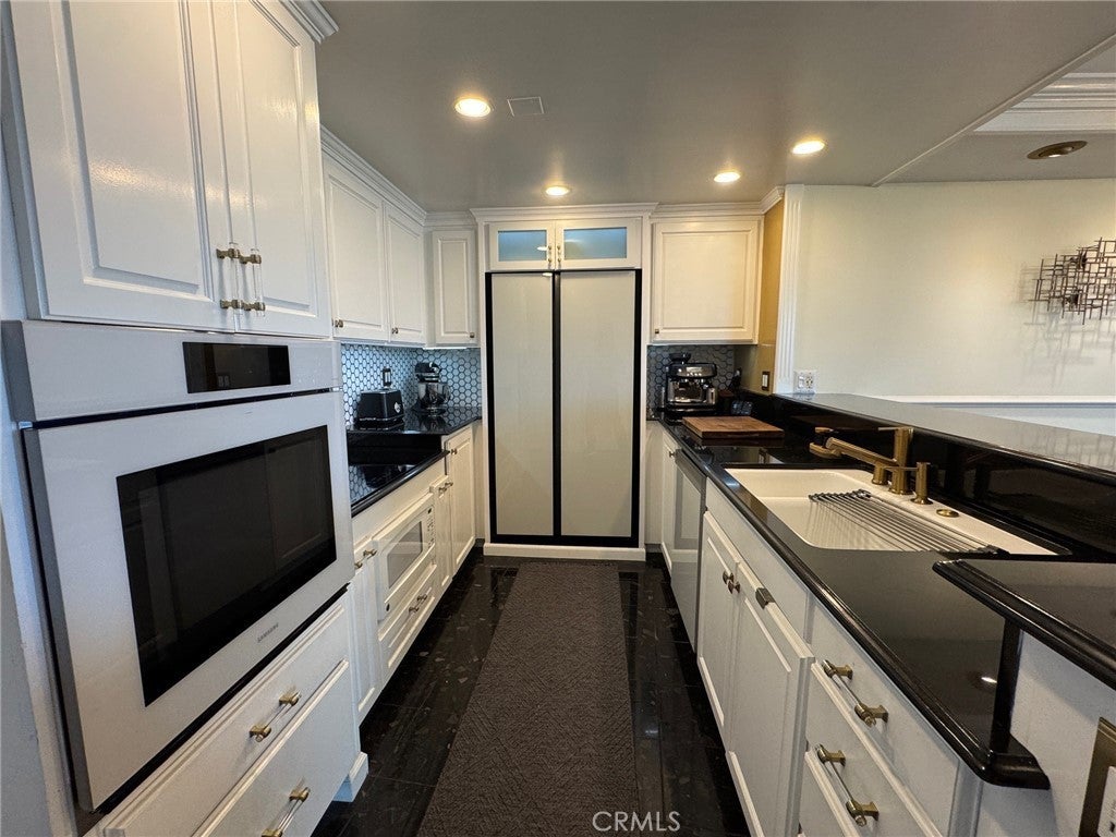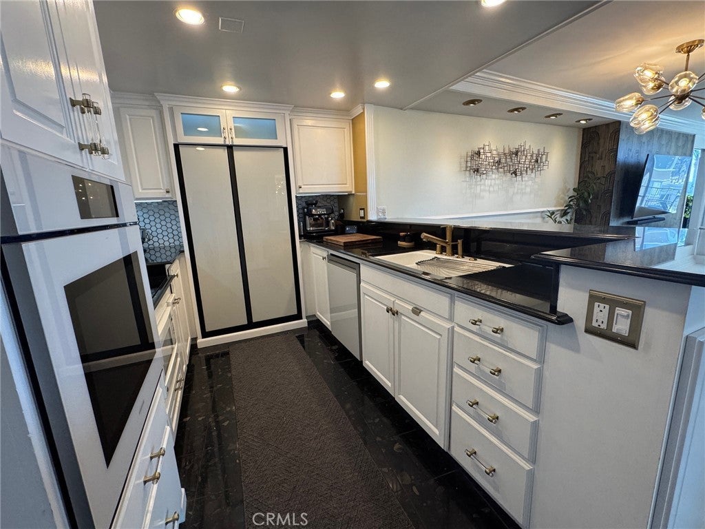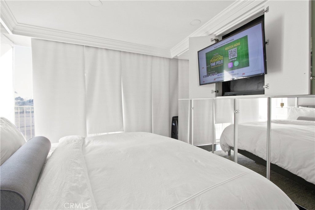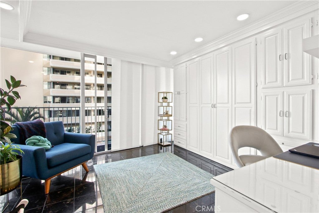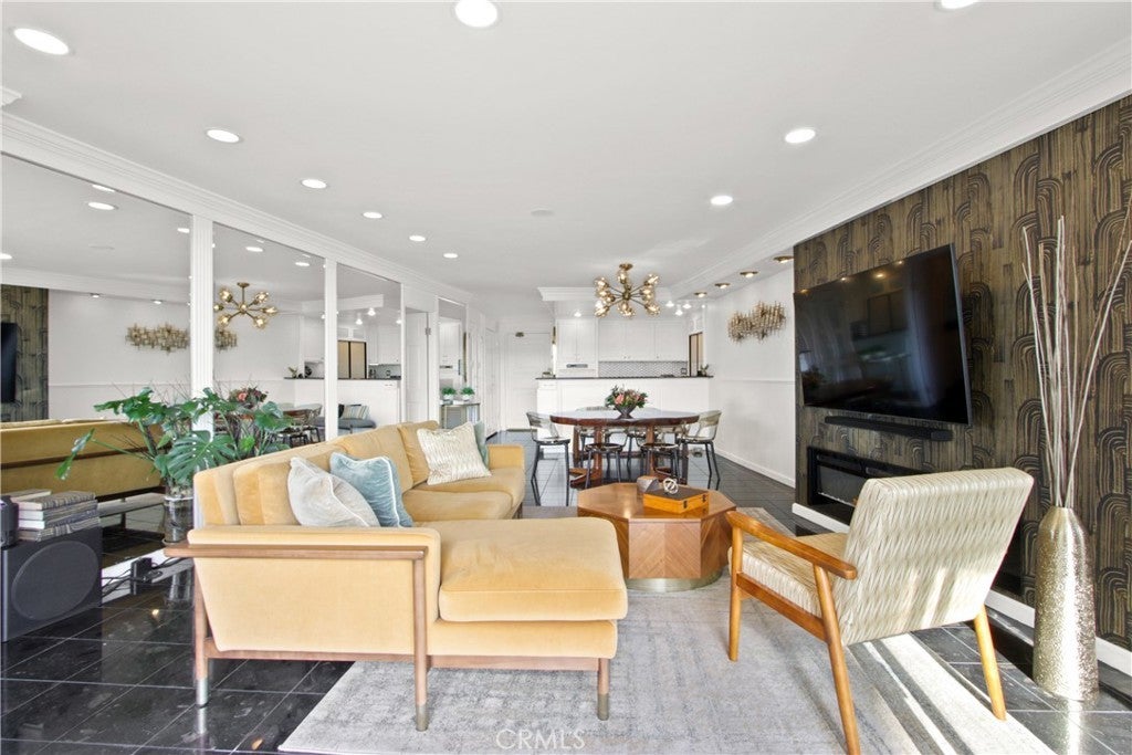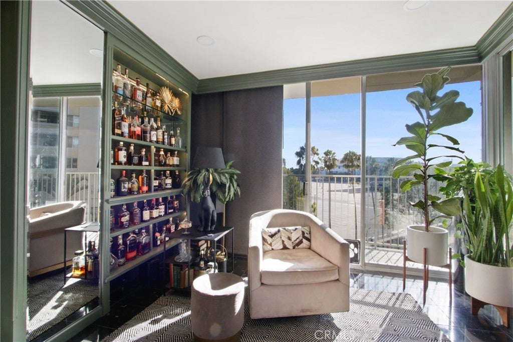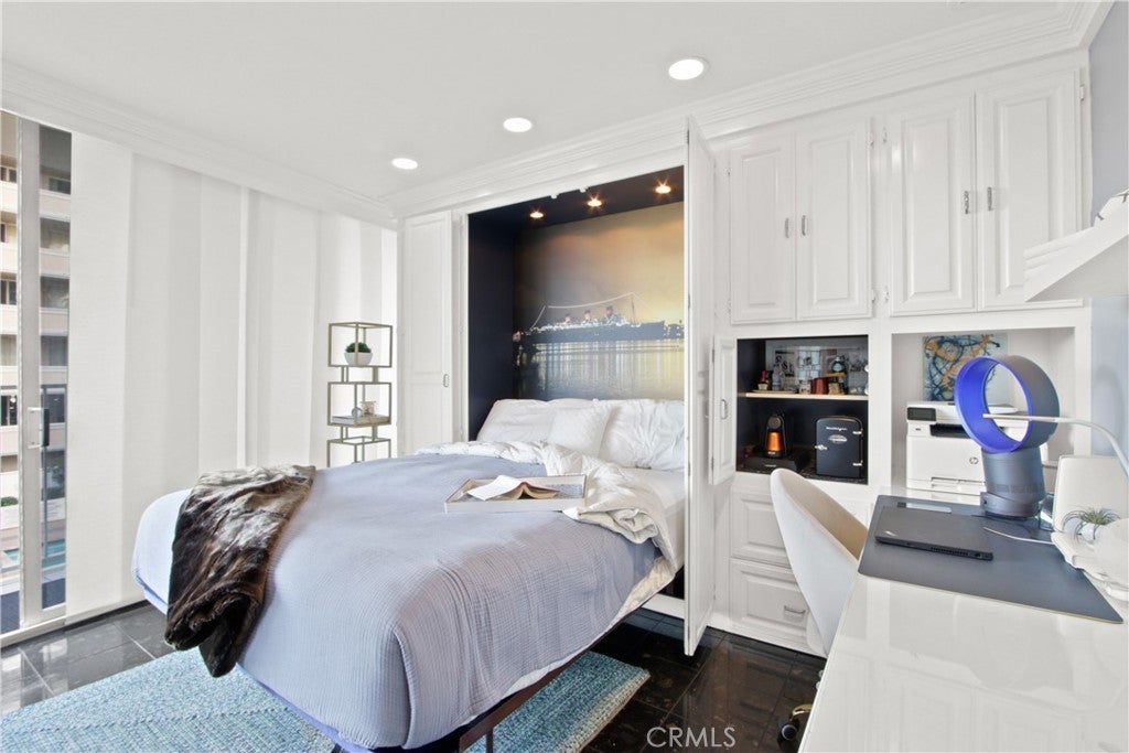 Welcome to 700 E. Ocean Blvd., Unit #608, where mid-century modern design meets elevated coastal living in the iconic International Towers. Offered FULLY FURNISHED, this sixth-floor residence delivers a lifestyle that is truly one of a kind. Step inside to find a beautifully remodeled, modern kitchen to your left, featuring striking black granite countertops, crisp white cabinetry, and a stylish hex-tile backsplash, perfect for preparing everything from casual bites to full dinners. The kitchen opens seamlessly to the dining area, highlighted by a custom light fixture and an elegant wood dining table, ideal for entertaining. The living area is warm and inviting with sleek black tile flooring, a large flat-screen TV, and a built-in fireplace, creating a cozy yet sophisticated atmosphere. Just beyond is a versatile retreat currently styled as a “Bourbon Room” an ideal spot to relax with a book and enjoy your favorite evening cocktail. Past this space, the expansive primary suite offers generous storage and closet space, along with an ensuite bathroom featuring dual vanities, white tile backsplash, and a walk-in shower. On the opposite side of the condo, you’ll find a guest bedroom with built-in cabinetry, office space, and a fold-away Murphy bed, providing flexibility for work and visitors alike. The adjacent guest bathroom includes a beautiful vanity and a shower/tub combination for added comfort. For evenings at home, step out onto the wrap around balcony that spans the full length of the condo. Enjoy harbor and coastline views from the high top table while taking in ocean breezes and stunning sunsets. Located in the heart of Downtown Long Beach, this home offers easy access to top restaurants, bars, and the many festivals and events that make this area so vibrant. Simply put....there’s no better place to be!