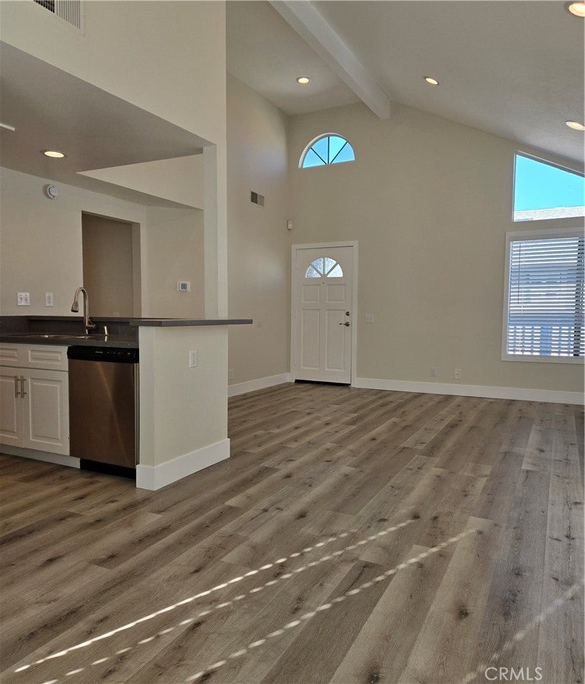 Welcome to high vaulted ceiling End Unit with plenty of natural light throughout, in the heart of Northwood. Recent upgrades include elongated quartz countertop kitchen with white shaker cabinets & stainless steel appliance, Brand new washer/dryer, and Fresh new paint--> ready for immediate move in. Bay window dining room, adjacent to spacious living room with secluded master bedroom suite and large walk-in closet offers a unique sense of privacy with no one above or below. One car garage directly below with plenty of guest parking just steps away, and an additional storage closet located under the stairs. Amenities include community pool/spa with an abundance of greenbelt areas and is close proximity to Northwood Elementary and Sierra Vista Middle School. Just minutes from shopping centers & freeways. Must see.