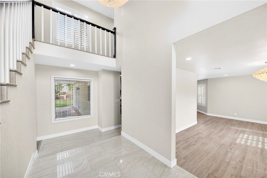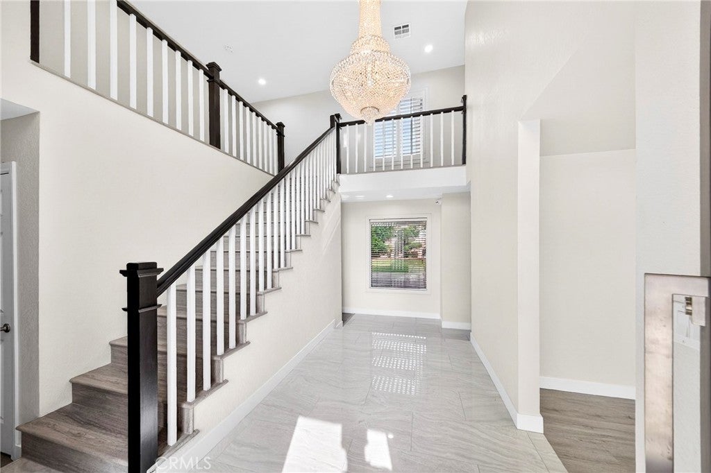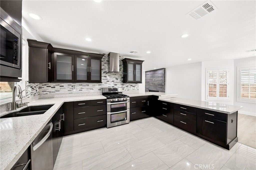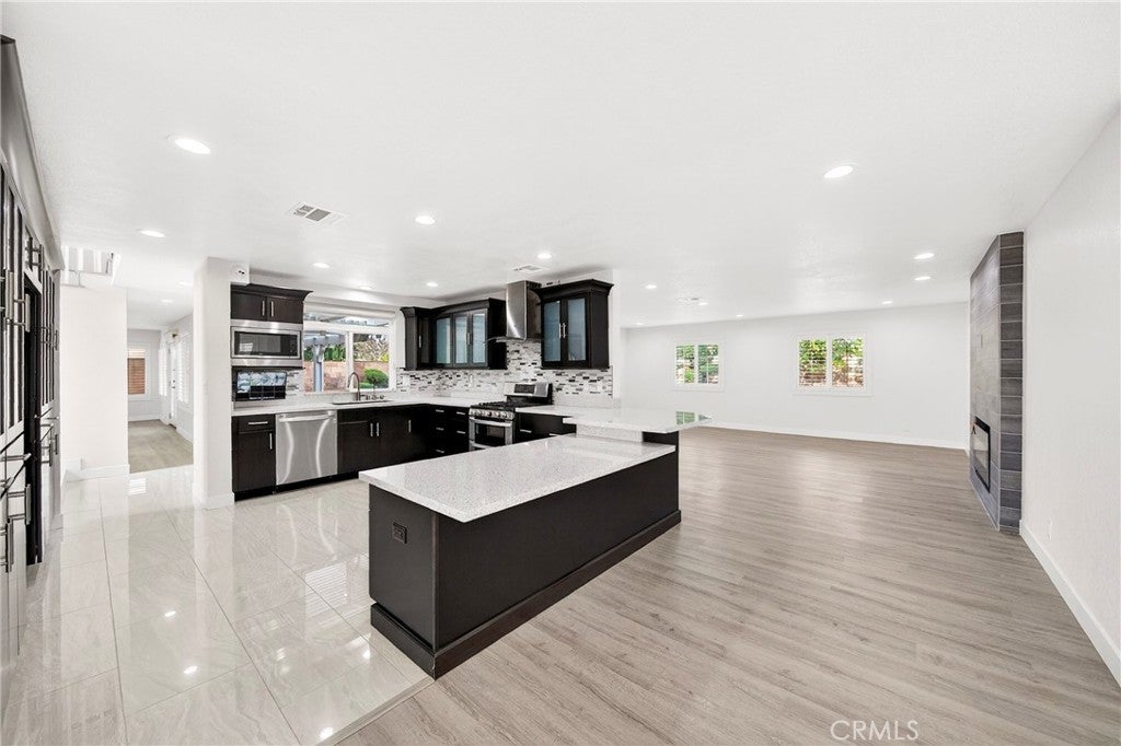 ***ACTUAL SQUARE FOOTAGE IS SIGNIFICANTLY LARGER THAN PUBLIC RECORDS DUE TO A BUILDER ERROR. CORRECTION IS IN PROGRESS*** Bright South-Facing, Fully Upgraded Gated Home in Northridge Filled with natural sunlight from its desirable south-facing orientation, this beautifully upgraded 4-bedroom, 3.5-bath home is located in a sought-after gated community in Northridge. The property has been extensively remodeled with hundreds of thousands of dollars in upgrades, offering a bright, open, and modern living experience. High ceilings and an open floor plan create an airy atmosphere throughout. The updated kitchen features quartz countertops, stainless steel appliances, and abundant cabinetry, and opens seamlessly to the family room with a cozy fireplace—ideal for everyday living and entertaining. The lower level features an additional flexibl-use living area that may serve as a secondary family room, home office, or multi-purpose space. The spacious primary suite boasts vaulted ceilings, walk-in closets, and a tastefully remodeled en-suite bathroom. All bathrooms have been updated with elegant, modern finishes. Enjoy private front and back yards with a wood patio, perfect for relaxing or hosting guests. Conveniently located near shopping, dining, top-rated schools, and easy freeway access, this turnkey home offers the perfect combination of light, space, security, and convenience.