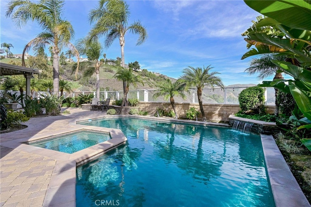 Spectacular Views of Sunrises, Rolling Hills & City Lights from 5-Bedroom Pool Home! Tucked Away High in the Hills of Yorba Linda on a Small Single-Loaded Cul-De-Sac Street of Only 8 Homes ... Peaceful & Private Backyard Setting Surrounded by Scenic Views of Nature - Lush Tropical Landscaping with Numerous Palms & Birds of Paradise - Sparkling Pebble Tec Pool & Spa with Waterfall - Covered Patio - Extensive Stone Pavers & Raised Planter with Seating, This is an Entertainer's Dream Backyard! Approx 2,644 SqFt Home Features 5 Bedrooms & 3 Bathrooms, Including a Main Floor Bedroom & Bathroom with Shower - Stunning Custom Double Iron Entry Doors Open to Formal Living Room & Dining Room with Soaring 2-Story Ceilings - Spacious Chef’s Kitchen has Ample Wood Cabinetry, Center Island, Granite Countertops, and Stainless-Steel Appliances, Including Double Ovens, Microwave, Dishwasher & 6-Burner Gas Cooktop - Breakfast Eating Nook - Kitchen Open to Family Great Room with Fireplace & Custom Built-In Media Niche - Double Door Entry to Primary Suite with Vaulted Ceiling & Two Walk-In Closets - Primary Bathroom has Dual Vanities, Soaking Tub & Separate Shower - Upstairs are 3 Additional Good-Sized Bedrooms & Bathroom with Tub/Shower - Main Floor 5th Bedroom Currently Used as a Home Office - Convenient Inside Laundry Room - Attached Oversized 3-Car Garage - No HOA Dues – No Mello Roos Tax - Award-Winning Placentia-Yorba Linda School District, Zoned for Bryant Ranch Elementary, Travis Ranch Middle & Yorba Linda High - Easy Access to the 91 Freeway & 241 Toll Road - Also Close to Brush Canyon Park with Lighted Basketball Court, Tennis Courts, Picnic Shelter, Playground & Pickleball Courts
