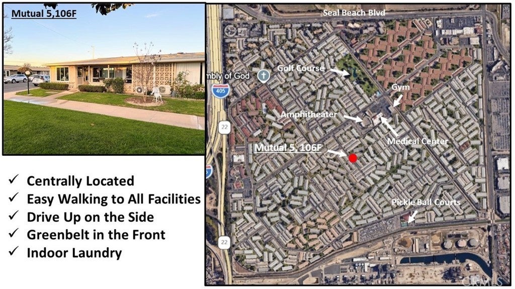 This is a fantastic move in ready, partially expanded, two bedroom one bath corner unit in Mutual 5. It has the best of all worlds - greenbelt in front for privacy plus drive-up on the side so you can easily unload groceries. In fact there is a side door allowing direct access to the street side of the unit. It has a perfect location right in the middle of Leisure World for easy access to all amenities and well away from the freeway and the power plant. The unit boasts dual pane windows, two heat pumps, and beautiful laminate throughout. The kitchen has a built in microwave and dishwasher as well as a newer countertop. The bathroom shower has upgraded glass and there is a WASHER/DRYER! The patio out front is perfect for that morning coffee or evening wine with friends. There is a lockable storage room on the patio. If you are looking for a move in ready corner unit in a great location at a reasonable price - this is it! Carport located at Bldg 71, Space 31.
