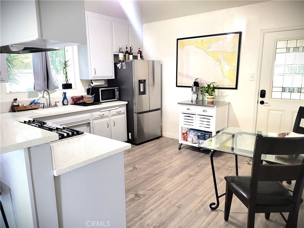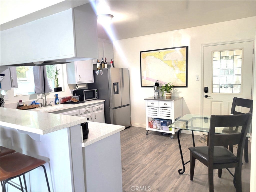 This beautifully remodeled 2-bedroom, 1 1/2-bath townhouse style unit offers approximately 1,250 sq ft of stylish living space, perfect for those seeking both comfort and convenience. The home features modern laminate flooring throughout and ceiling fans in each bedroom for optimal comfort. Enjoy the convenience of an interior stackable washer & dryer and relax in your private, enclosed front patio—perfect for enjoying the outdoors in peace. For added convenience, the property includes one garage space with an electric vehicle outlet. Located just 1/2 a block from the Electric Avenue Greenbelt, only 2 blocks to the beach, and a short stroll to Main Street's vibrant restaurants and shops, this is the ideal location for coastal living.