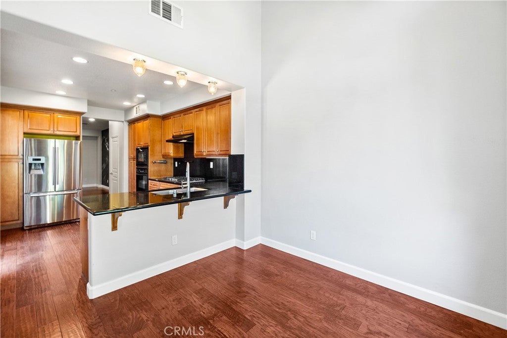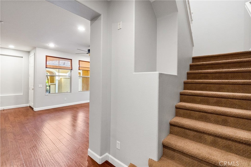 Gorgeous 3-bedroom, 2.5-bath home located in the highly sought-after Woodbury community of Irvine. The first level features rich wood flooring, recessed lighting, and large windows that flood the space with natural light. Upon entry, you’re welcomed into a spacious living room complete with a cozy fireplace, ceiling fan, and custom wallpaper accents. Just beyond, the open-concept layout seamlessly connects the kitchen and formal dining area, creating an ideal space for everyday living and entertaining. The kitchen is appointed with granite countertops and includes a refrigerator, dishwasher, built-in microwave, stove, and oven. French doors open to the charming front patio—perfect for morning coffee or hosting guests. Upstairs, you’ll find all three bedrooms, two full bathrooms, and a convenient laundry room. The primary suite features plush carpet flooring, custom wallpaper, and a private en-suite bathroom with dual vanities, a separate soaking tub and shower, and an oversized walk-in closet. The two additional bedrooms also offer carpet flooring, built-in storage, and ceiling fans. A second full bathroom includes dual vanities and a shower/tub combination with a privacy door. Additional highlights include an attached two-car garage for easy parking. Residents enjoy access to Woodbury’s exceptional resort-style amenities, including a clubhouse, parks, seven swimming pools, tennis courts, picnic areas, and scenic walking and biking trails. Conveniently located within walking distance to Woodbury Town Center.