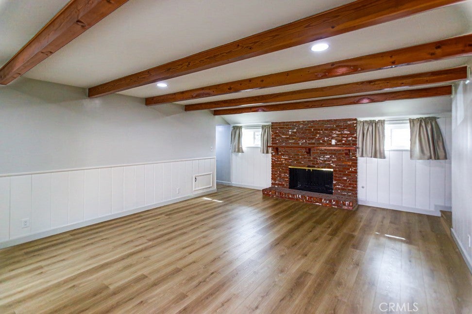 Settle in, you're going to love it here. Mature landscaping and classic curb appeal set the tone, inviting you inside to see what makes this space truly special. Step into the main living area and feel the openness wrap around you. The kitchen and living room flow together effortlessly, anchored by recessed lighting and a beautiful quartz countertop running the length of the island, just begging you to sit down and enjoy a morning coffee or a cocktail hour with friends. Just off the main space, the secondary step-down living room feels like its own little world -exposed beams overhead, a charming brick fireplace, and plenty of room to settle in for movie nights, winter snuggles, or slow Sunday afternoons. This home's thoughtful updates continue throughout, including a remodeled bathroom with a crisp tile shower and glass doors, plus new windows that make every room feel fresh and connected. Step outside to a covered patio designed for real living - a private BBQ area, space to unwind, and a beautifully landscaped backyard that seems to calm you the moment you step out. All of this sits in one of Anaheim's most prestigious neighborhoods, close to the 5, 57, and 91 freeways, incredible dining and entertainment in the Packing District and downtown, and of course, just a short 5-minute drive from Disneyland.