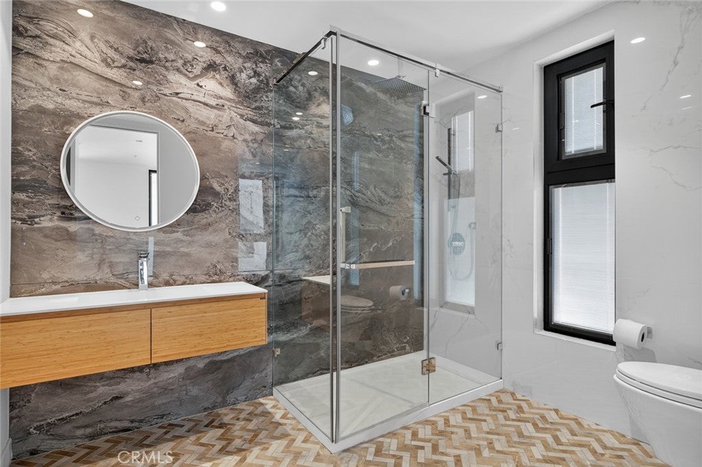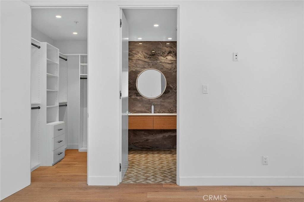 Stunning LOHA-Designed Modern Condo in the Heart of West Hollywood Experience luxury living in this impeccably designed two-story condo by renowned architectural firm LOHA, nestled in the vibrant heart of West Hollywood. This sophisticated residence blends modern elegance with thoughtful design, featuring soaring ceilings and expansive floor-to-ceiling windows that flood the space with natural light. The open-concept interior showcases large-format tile flooring and a sleek chef’s kitchen, complete with a striking waterfall island, streamlined ventilation, pendant lighting, and recessed illumination. Perfect for entertaining or quiet evenings at home. Upstairs, dual master suites offer serene retreats with generous walk-in closets and spa-inspired en-suite bathrooms. Each bath features an elegant floating vanity with a large round mirror and oversized enclosed showers, creating a luxurious, spa-like ambiance. A cozy private patio extends your living space outdoors—ideal for morning coffee or evening relaxation. Located just steps from the iconic Sunset Strip, you’ll enjoy proximity to Chateau Marmont, legendary comedy clubs, and live music venues. Walk to Santa Monica Boulevard for an array of lively bars, shops, dance clubs, and some of LA’s most celebrated restaurants. This is urban living at its finest in one of the city’s most desirable neighborhoods.