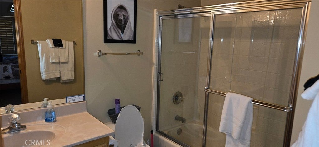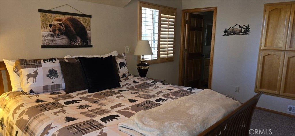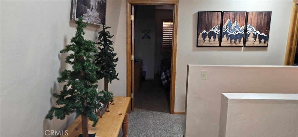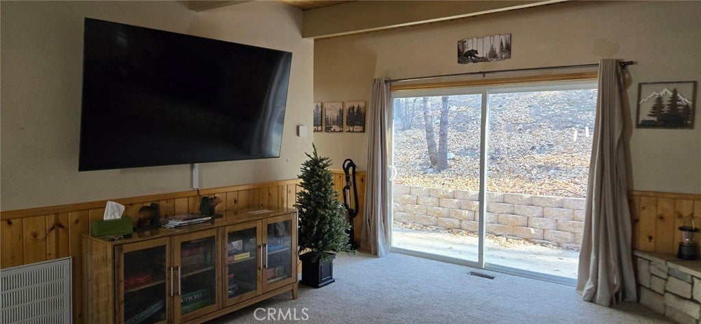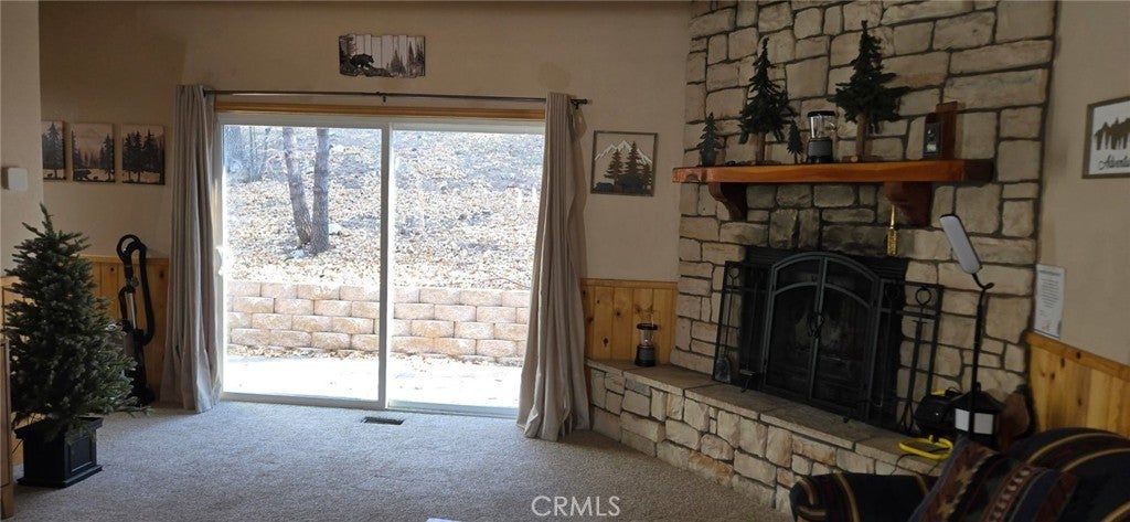 Beautiful Moonridge home nestled on a quiet street with no home directly across the street. Very quiet and tranquil. This home is located close to Bear Mountain Ski Resort, Golf Course, and the Big Bear Zoo. Only about a 10 minute drive to The Village for fantastic shops and restaurants. Property consists of brand new carpet throughout, new slider door, wood beam ceilings, cozy fireplace, separate dining room, and spacious kitchen with center island and stainless appliances. All furniture and appliances are included in the sale including the new large living room hanging TV and TV's located in each of the bedrooms. The lot is 7,560 with a side refurbished deck, rear patio, and front wrap around parking.
