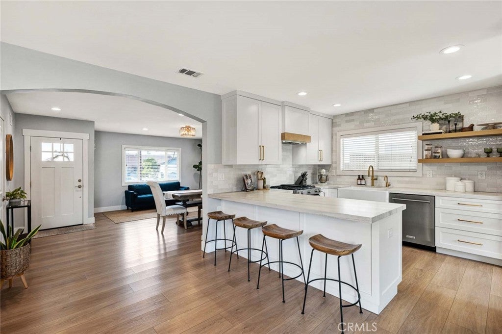 Welcome to 677 N. Clinton Street, a Single-Level Dream Home Situated on an Interior Lot within the Heart of Orange. This Fully Remodeled Home Enjoys Three Bedrooms, Two Bathrooms, Luxury Vinyl Plank Floors, Newer HVAC, Newer Water Heater, New Insulation and Duct Work, and Countless Owner Upgrades Throughout. As You Enter the Home, You are Greeted by the Open-Concept Living and Dining Room Which Feature Custom Built-Ins and Sit Adjacent to the Kitchen. The Gourmet Kitchen Showcases Quartzite Counters, Cabinetry with Pull-Out Drawers, Farmhouse Sink, Stainless Steel KitchenAid Appliances, Open Shelving, Coffee Bar, Pantry, Peninsula with Seating, and Backyard Access. The Spacious Family Room Includes a Cozy Fireplace with Built-In Cabinets, Backyard Access, and Opens to the Kitchen, Perfect for Entertaining. The Master Suite Includes Mirrored Closet Doors and a Walk-In Shower. The Spacious Second Bedroom Features Backyard Access, Perfect for Guests or Multi-Generational Living. The Resort-Style Backyard Includes a Newly Remodeled PebbleTec Pool and Spa, New Hardscape and Paver Patio, Turf, Pergola, and Block Walls Providing Maximum Privacy. Two Car Garage with Laundry Inside Main House. No HOA or Mello-Roos! Easy Access to the 5/55/22/57/91 Freeways. Minutes Away from Multiple Parks, Shopping Centers, Chapman University, and The Orange Circle (Plaza). 677 N. Clinton Street is a Must See!