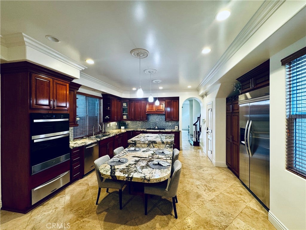 Fully Furnished Three Bedroom Home with Fourth Bedroom Potential Located in the highly sought-after Downtown Huntington Beach community. Enjoy living just a few short blocks to the Pacific Coastline. This Spacious home is complete with Quality Finishes and Travertine floors that flow through out. The light and bright Living Room w/ dining area has french doors that open to the Front Patio making it a great place for indoor/outdoor living. This floor plan transitions seamlessly into the Family Size Kitchen that boasts Dual Pantries with custom pull out shelves, an Oversized Island, displaying high end Granite Counter Tops, Real Wood Cabinetry, and Stainless Steel Appliances w/ 5 Burner Gas Range. The additional space off the kitchen is perfect for a Family Room or Dining Area to host social gatherings, and looks onto the private courtyard. Make your way up the staircase with Custom Under Foot Lighting to the second floor that offers a Two Story Great Room with marble fireplace and T.V. included, along with a powder room for convenience. Down the hall is the sunny Primary Suite with sliding glass doors to let in the ocean breeze. The Ensuite Bathroom features marble floors, vanity with dual sinks, granite counter tops, Jacuzzi tub and his/hers closets. The two additional bedrooms, share a full Jack and Jill bathroom w/ dual sinks and granite counter tops. Approach the third level to find an Expansive Bonus Room or 2nd Primary Suite with an exterior deck to enjoy the famous HB sunsets. The custom nook would serve as a great wet bar or coffee station. The Finished Garage has epoxy flooring and this home is in a quiet area just minutes to the Huntington Beach Pier/ Main Street, and Pacific City for upscale shopping, dining, and entertainment. If the beach lifestyle is what you desire, you don't want to pass this one up! Opportunities like this don't come around too often in this location. This Three Story Beauty offers all the amenities of the luxury beach lifestyle. Come enjoy vacation living all year round with all that our famous Surf City has to offer including distinguished schools, Upscale Resorts, US Open of Surfing, Pacific Airshow, Beach Concerts and Farmers Market on Main Street year round!
