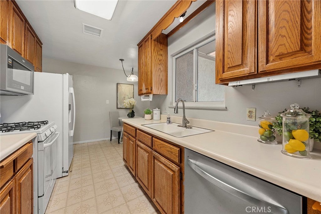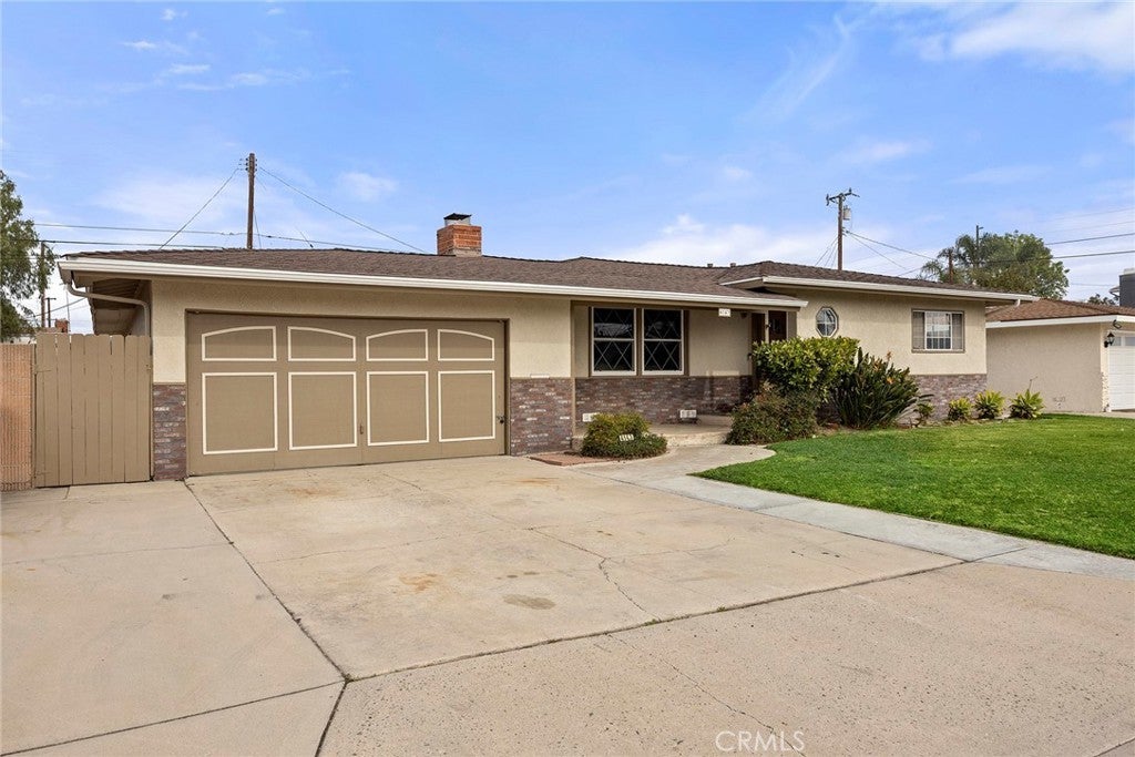 Your home awaits with this spacious 3-bedroom, 2-bathroom home offering 1,955 sq ft of living space on a generous 7,494 sq ft lot, ideally located in the City of Orange with close proximity to the heart of Anaheim. Enjoy convenient access to world-class destinations including Disneyland, the Anaheim Convention Center, Angel Stadium, Honda Center, and a wide array of shopping, dining, and entertainment options. This home boasts excellent curb appeal with a large, lush green front lawn and inviting presence. Step inside to discover brand new flooring and fresh interior paint throughout. The home opens to a welcoming living room featuring a classic brick fireplace, perfect for relaxing or entertaining. All three bedrooms are thoughtfully situated on one side of the home, along with a full guest bathroom. The primary bedroom includes an ensuite bathroom, and both bathrooms have been updated with durable LVP flooring. The kitchen continues into a dedicated laundry area with direct access to the backyard, adding everyday convenience. A formal dining room provides the perfect space for gatherings and special occasions. At the rear of the home, step down into a large bonus or family room showcasing wood floors and charming beamed ceilings, with direct access to the backyard—ideal for entertaining or creating a cozy retreat. An additional room offers flexibility and can be used as a home office, hobby room, or potentially converted into a fourth bedroom. Outside, enjoy a concrete covered patio and a spacious backyard with artificial grass, offering low-maintenance living. The expansive lot provides exciting potential to add a pool, expand the home, or build an ADU. This property offers space, versatility, and an unbeatable location—an exceptional opportunity you won’t want to miss.