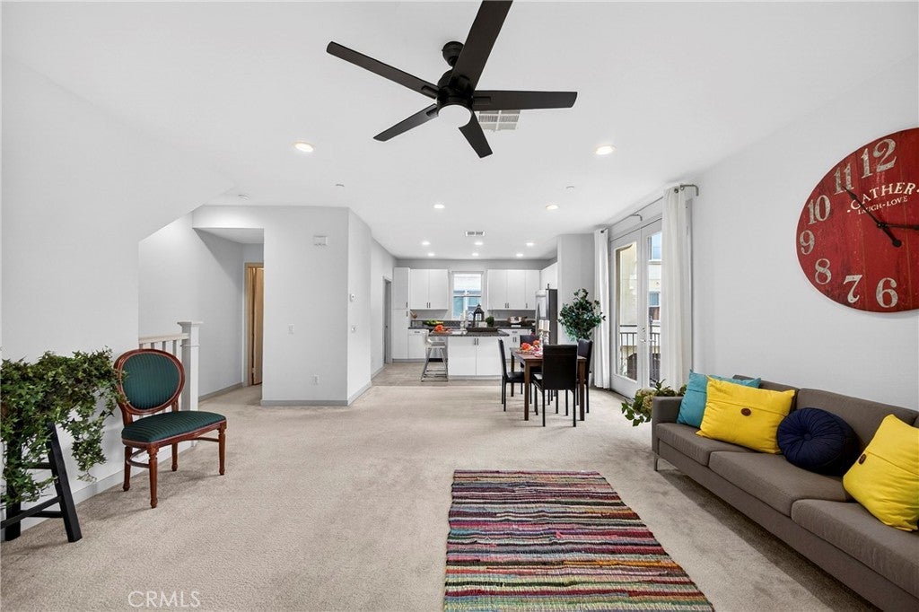 Welcome to this beautiful and well-maintained condominium located in the heart of Anaheim. This spacious home features three bedrooms and two and one-half bathrooms, offering a functional and comfortable layout ideal for everyday living and entertaining. The bright and inviting interior showcases an open living area filled with natural light, flowing seamlessly into the dining space and kitchen. The kitchen is a standout feature, complete with a large center island, ample cabinetry, and generous counter space—ideal for casual dining, meal preparation, and gatherings. All bedrooms are generously sized, including a private primary suite with its own bathroom for added comfort. The home also includes a separate, dedicated laundry room located inside the unit, adding convenience and additional storage. Enjoy relaxing or entertaining on your private balcony, perfect for morning coffee or unwinding at the end of the day. The community is well maintained and conveniently located near shopping, dining, schools, and major freeways, offering easy access to everything Anaheim has to offer.This is a wonderful opportunity to own a move-in-ready condo in a desirable Anaheim location. Make it a point to see this beautiful home before it's gone!!!!!