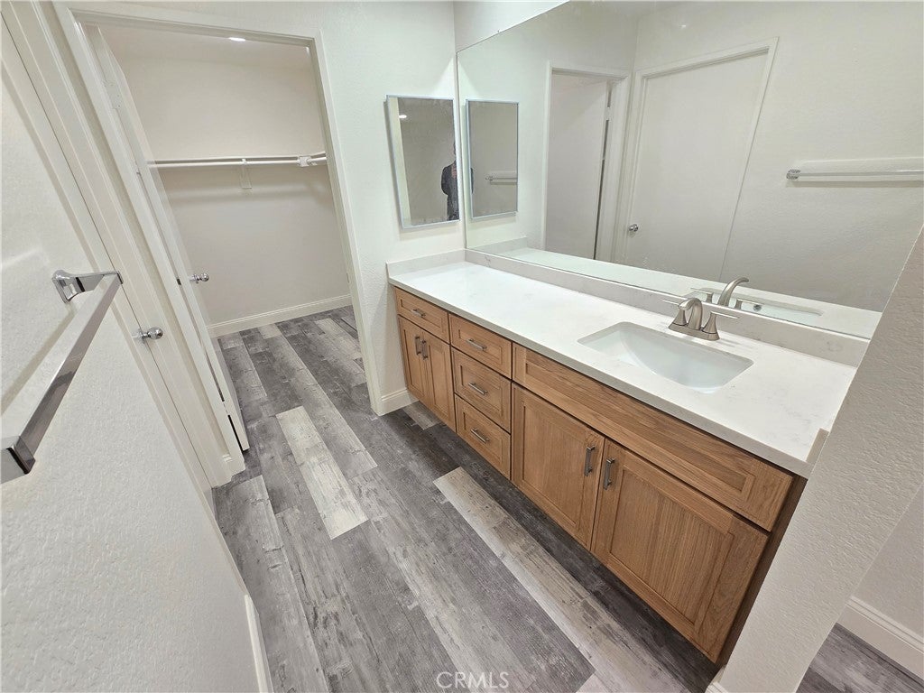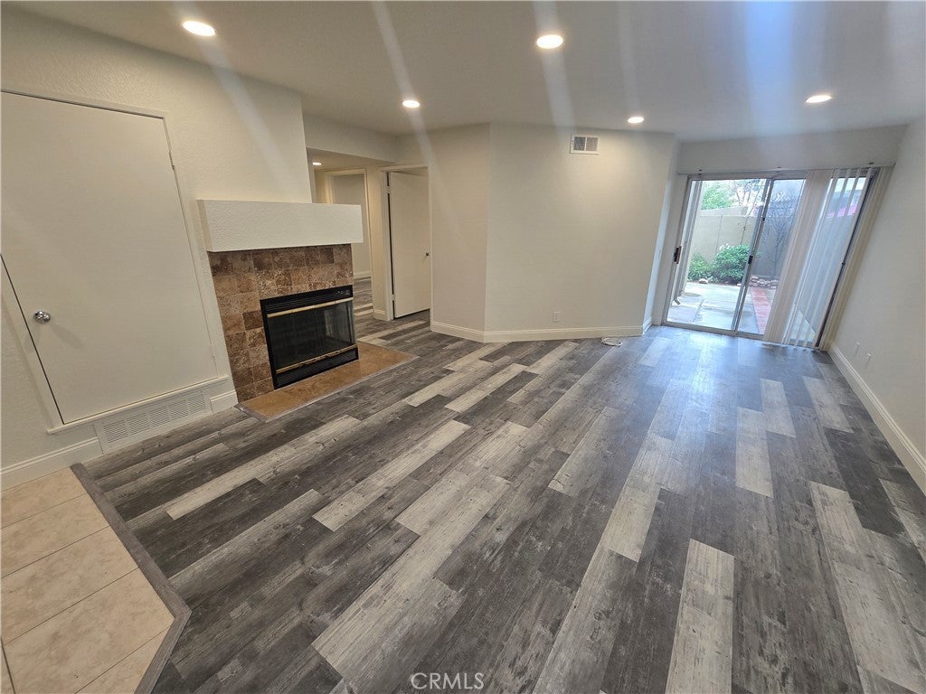 Stunning fully remodeled ground-level unit — move-in ready! Beautiful updates throughout, including all-new natural wood kitchen cabinets, quartz countertops, single-bowl stainless sink, new refrigerator, and modern LED lighting. Thoughtful finishes include scraped ceilings, fresh paint, and gray-tone LVP flooring. New double-pane windows bring efficiency and light. Bathrooms feature new natural wood vanities, new quartz counters, new sinks, faucets, new recessed LED lighting, & new medicine cabinets. The primary bedroom offers a huge walk-in closet. Every bedroom has new recessed LED lighting. Direct-access one-car garage with abundant built-in storage shelves. Enjoy a private nice-sized backyard. Community amenities: 2 pools and spas. Lake Mission Viejo rights are included. Easy to show