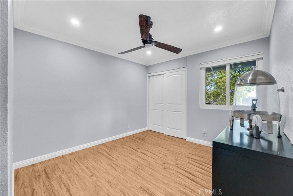 Beautifully updated two-story home located in a gated community on the border of Orange and Tustin within the Orange Unified School District. Features 5 bedrooms and 3 bathrooms — 4 bedrooms and 2 baths upstairs, and 1 bedroom and 1 bath downstairs. Originally 4 bedrooms, Updated kitchen with granite countertops and tile flooring. Spacious dining area with high ceilings and plenty of natural light. Large master bedroom includes a fireplace, high ceiling, and walk-in closet.Home features crown molding, double-pane windows, and plantation shutters throughout for energy efficiency and style. Recent updates include new plumbing, new tile flooring, fresh paint, and upgraded electrical outlets. Large back patio is perfect for gatherings and outdoor entertaining. Community amenities include a pool and gated entry for added security. Conveniently located near the 5, 22, and 55 freeways. Close to major employers including UCI Medical Center, CHOC, and Orange County Global Medical Center. Nearby shopping, dining, and entertainment at Main Place Mall, The Outlets at Orange, Honda Center, Angel Stadium, and Discovery Cube. PLEASE NOTE: This property is subject to a Land Lease arrangement, with the current lease term expiring in 2049.