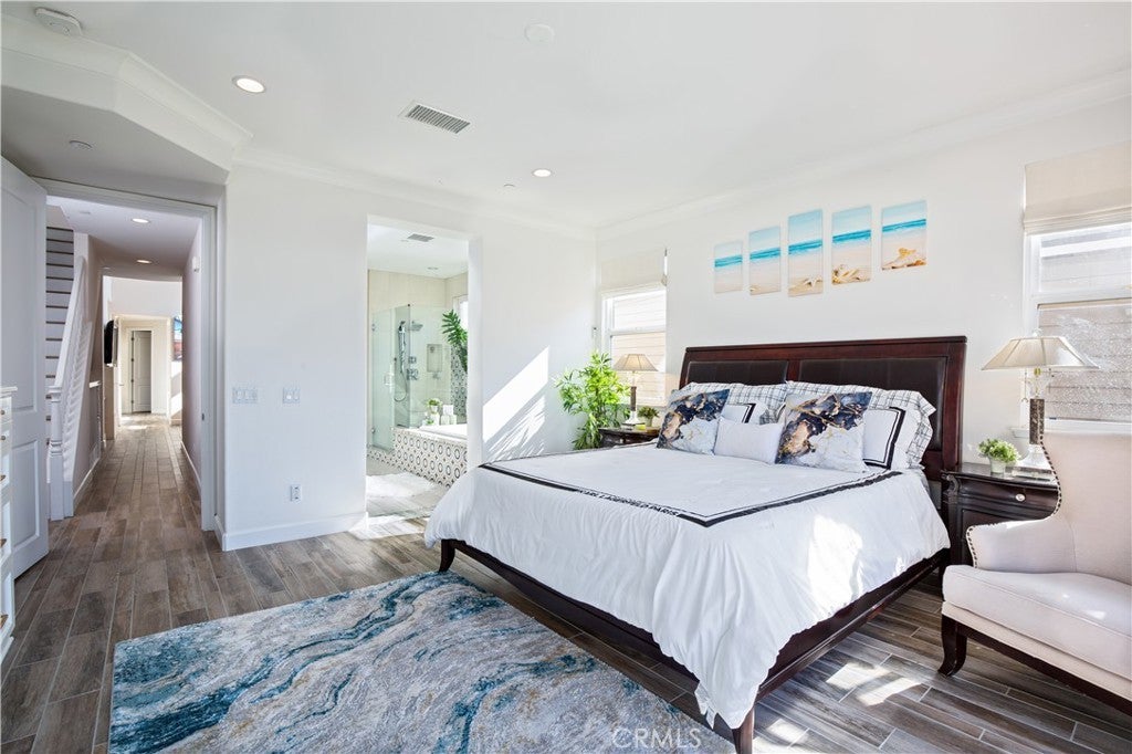 Fully Furnished Luxury Downtown Huntington Beach Home – Walk to the Beach, Dining, Shopping + More! Come experience this stunning newer-built, three-story luxury residence located in a quiet and desirable pocket of Downtown HB, just minutes from the ocean. This exceptional home is fully furnished and move-in ready, perfect for anyone seeking a high-end coastal lifestyle with zero hassle—just bring your suitcase and settle in. Featuring approximately 3,000 sq ft, this spacious home offers 4 bedrooms + bonus spaces, 5 bathrooms, and a bright, open layout designed for both comfort and entertaining. Enjoy high-end finishes throughout, including a gourmet chef’s kitchen with Thermador Pro appliances, a 42” side-by-side refrigerator, farmhouse sink, U-Line wine refrigerator, and elegant granite slab countertops—ideal for daily living and hosting family and friends. The first floor welcomes you with a sun-filled living and dining area, a charming breakfast nook, and an inviting family space that flows beautifully into the kitchen—creating the perfect gathering atmosphere for relaxed coastal living. The second level features a grand primary suite with a French balcony, walk-in closet, and a spa-style bathroom with dual sinks and a luxurious shower. The suite includes a comfortable California King bed and TV for winding down after a day at the beach. Two additional bedrooms with queen beds share a stylish Jack-and-Jill bathroom, plus charming window seating that adds warmth and personality. There 2nd living room could easily convert to 5th bedroom, library, game room or extra office. The third level offers a private office space with an expansive terrace and peek-a-boo ocean views. There are 2 beds on the 3rd floor Step onto the front porch and enjoy beautifully landscaped outdoor space—perfect for morning coffee, evening conversations, and soaking in the coastal breeze. Live just a short walk to world-class restaurants, shopping, Pacific City, Main Street, and Huntington Beach Pier, with easy access to nearby freeways for commuting. This is a rare opportunity to lease a high-end, fully furnished luxury home in one of Huntington Beach’s most desirable coastal neighborhoods. Come experience true beachside living—fully turnkey and effortlessly elegant