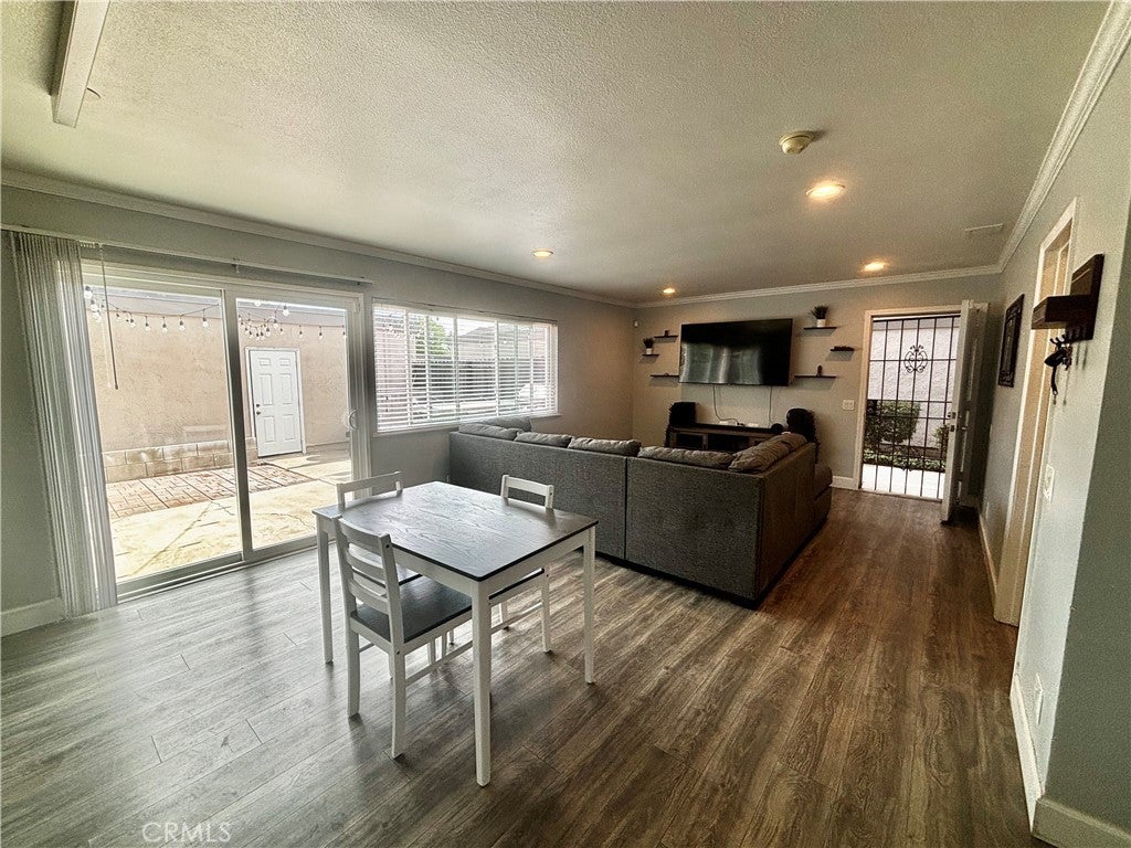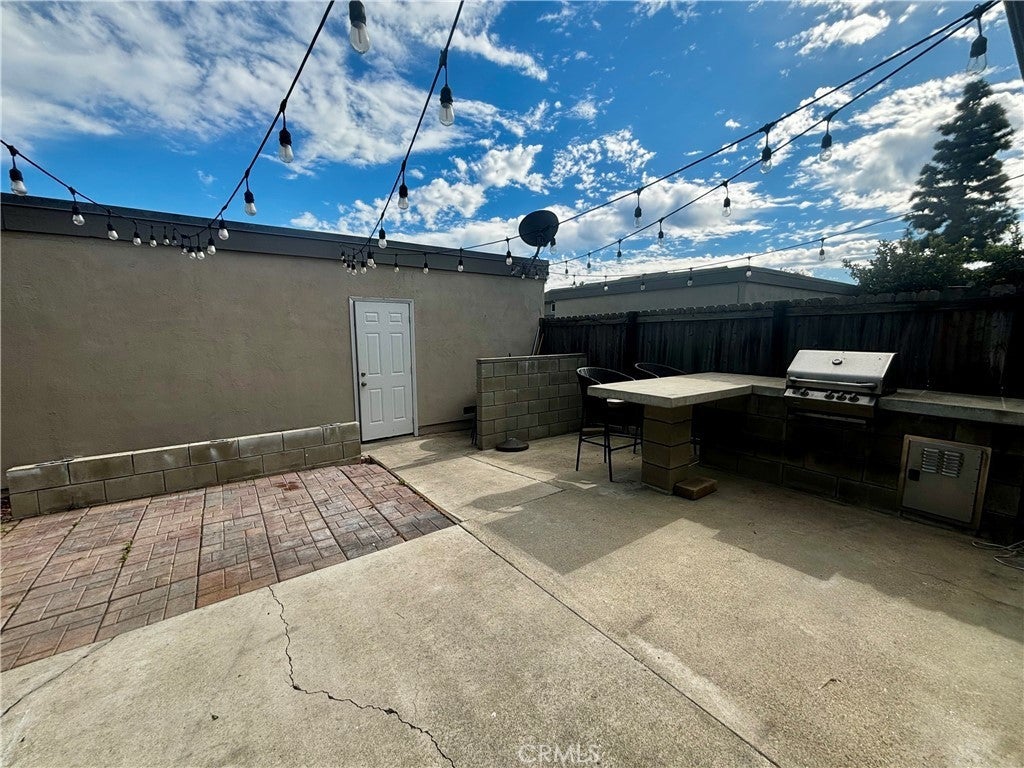This beautifully upgraded Bradford Place end-unit townhome is move-in ready and radiates style, comfort, and modern appeal throughout. Nestled in the desirable Bradford Place community in Santa Ana, this single-story (one-level) residence features 2 bedrooms, 1 bathroom, and only one shared wall for enhanced privacy and a quiet, end-unit feel.Bathed in natural light, the open-concept floor plan seamlessly connects the tastefully upgraded kitchen to the dining area and spacious family room—ideal for effortless entertaining or relaxed daily living. The kitchen boasts contemporary upgrades, ample cabinetry, and a bright, inviting layout that flows effortlessly outdoors.Step outside to your private patio retreat, a true highlight perfect for year-round enjoyment. The expansive patio includes a built-in BBQ with sleek concrete countertops and charming bistro-style string lights overhead, creating the perfect ambiance for evening gatherings, barbecues, or simply unwinding under the stars. Direct access from the yard leads to the oversized 2-car garage, complete with laundry hookups and generous storage space for added convenience. Residents of Bradford Place enjoy exclusive community amenities, beautiful green park with kids playground, just steps away. including a sparkling pool and rec room—great for cooling off, socializing, or staying active without leaving home.Prime location perks make this home even more appealing: minutes from major shopping centers like South Coast Plaza, freeways (easy access to I-405, I-5, and beyond for commutes to Orange County, Los Angeles, and more), plus proximity to top-rated schools, parks, and Santa Ana's vibrant, family-friendly vibe in the heart of Orange County.