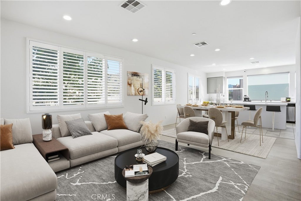 Beautifully upgraded 4-bedroom, 3.5-bath end-unit tri-level townhouse located at 811 N. Dalton Avenue #105 in Azusa. This thoughtfully designed home offers a private first-floor bedroom with an en-suite bath & direct access to the attached garage, ideal for guests, multi-generational living, or a home office setup. The second level features the main living space with an open-concept layout, fresh interior paint, recessed lighting, & abundant natural light. A covered balcony & courtyard showcase scenic hill views, creating a perfect space for relaxing or entertaining. The modern kitchen is equipped with an island, roller shades, a refrigerator, and ample cabinetry, while plantation shutters throughout the home add both style and energy efficiency. Newer luxury vinyl plank flooring enhances the bedrooms and family room for a cohesive, contemporary feel. The third level includes three additional bedrooms and convenient in-unit laundry hookups. As an end unit, this home enjoys added privacy & natural light. Community amenities include an outdoor cooking & picnic area. Ideally located near Target, Costco, shopping, dining, coffee shops, and everyday conveniences, with easy access to Citrus College, Azusa Pacific University, local parks, and the Metro Gold Line, offering a convenient commute throughout the San Gabriel Valley and beyond. A turnkey, well-appointed home combining comfort, functionality, & modern living in a desirable Azusa location. Some photos have been digitally altered.